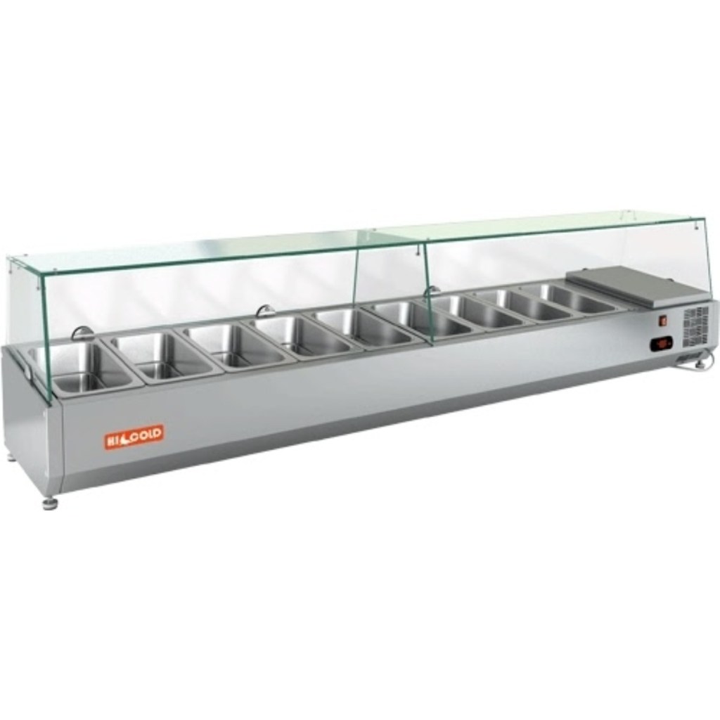 Каталог оборудования Холодильное оборудованиеВитрины для ингредиентовВитрина холодильная для ингредиентов HICOLD VRTG 1970 к PZЕ3 (1/3) Витрина холодильная для ингредиентов HICOLD VRTG 1970 к PZЕ3 (1/3) Код товара: 064-657 Поделиться: WhatsAppTelegram СравнитьДобавить в КПВ избранное 0 72 730 ₽ В корзину 0 шт Под заказСамовывоз сегодня бесплатно Взять в кредит Купить в лизинг Получить консультацию в WhatsApp Описание Характеристики Отзывы 0 Инструкции 3 Витрина холодильная для ингредиентов HICOLD VRTG 1970 к PZЕ3 (1/3) предназначена для охлаждения, кратковременного хранения и демонстрации ингредиентов, салатов и готовых блюд на предприятиях общественного питания и торговли. Устанавливается на холодильные столы для пиццы серии PZE3 благодаря встроенным креплениям в нижней части корпуса. На фото показана аналогичная модель с настольной установкой. Ключевые особенности: Корпус из нержавеющей стали — долговечность, простота ухода. Электронная панель управления — точная регулировка температуры. Исполнение G — стеклянная надстройка для удобного обзора продуктов. Высота витрины — 459 мм — компактное размещение на рабочей поверхности. Вместимость: 9xGN1/3 — рациональная организация хранения (гастроёмкости приобретаются отдельно). Совместимые модели столов: PZE3-1111/SN, PZE3-1111/GN HICOLD VRTG 1970 к PZЕ3 (1/3) — это профессиональная настольная витрина, которая сочетает компактные размеры, современное управление и высокое качество охлаждения. Отличный выбор для пиццерий, ресторанов и кафе, где важны удобство доступа, скорость работы и эффектная подача продуктов.Изображение товара, представленного на фото, может отличаться от его фактического вида. Показать все Габаритные размеры1970×385×459 ммДиапазон рабочей температурыот +2 до +7 °CДлина1970 ммГлубина385 ммВысота459 ммТип крышкиСтеклянная Гастроемкостей9 штТип гастроемкостейGN1/3 Мощность150 ВтНапряжение220 ВТип охлажденияСтатическое Материал изготовленияНержавеющая сталь ХладагентR134 Мощность0,15 кВтВес нетто38 кгВес брутто97 кгТип оттайкиРучная Габариты в упаковке2160×550×580 ммБрендHicold Оставить отзыв Еще никто не оставил отзыв на этот товар Инструкция на HICOLD VRTG 1970 к PZЕ3.pdfСхема установки на стол.jpgДекларация о соответствии.pdf Похожие товары Перейти в каталог Под заказ Цена по запросу Витрина для ингредиентов Polair VT2-G (1/3) открытого типа В наличии 46 639 ₽ Витрина холодильная для ингредиентов TEFCOLD VK33-120 С этим товаром покупают В наличии 79 865 ₽ Стол морозильный Cooleq SS45BT В наличии 12 636 ₽ Льдогенератор HURAKAN HKN-IMF12M В наличии 63 864 ₽ Шкаф холодильный МХМ Капри 0,5М Ранее просмотрено В наличии 167 392 ₽ Стол холодильный среднетемпературный HiCold GNE 22/TN О Под заказ 85 420 ₽ Витрина холодильная для ингредиентов HICOLD VRTG 2360 1/4 Под заказ 222 742 ₽ Стол холодильный среднетемпературный HiCold SNE 222/TN О Под заказ 136 342 ₽ Стол холодильный среднетемпературный HiCold SNE 12/TN O Под заказ 161 541 ₽ Стол холодильный среднетемпературный HiCold SNE 112/TN О