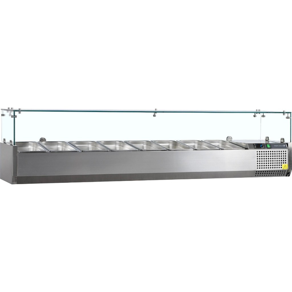 Каталог оборудования Холодильное оборудованиеВитрины для ингредиентовВитрина холодильная для ингредиентов TEFCOLD VK38-180 Витрина холодильная для ингредиентов TEFCOLD VK38-180 Код товара: 067-497 Поделиться: WhatsAppTelegram СравнитьДобавить в КПВ избранное 0 100 021 ₽ В корзину 0 шт В наличииСамовывоз сегодня бесплатно Взять в кредит Купить в лизинг Получить консультацию в WhatsApp Описание Характеристики Отзывы 0 Инструкции 2 Витрина холодильная для ингредиентов TEFCOLD VK38-180 предназначена для кратковременного хранения и демонстрации салатов, мясных и рыбных закусок, а также ингредиентов на предприятиях общественного питания и торговли. Корпус и внутренняя обшивка выполнены из нержавеющей стали, обеспечивая долговечность и легкость очистки. Гастроемкости в комплект не входят. Особенности: Статическое охлаждение — равномерное поддержание температуры для деликатных продуктов. Механическое размораживание — надежное удаление наледи без вмешательства пользователя. Хладагент R600a — экологичный и энергоэффективный. Электронный термостат и градусник — точная настройка и контроль температуры. Гнутый стеклянный колпак — обеспечивает обзор продукции и защиту от внешних воздействий. Регулируемые ножки — удобная установка и устойчивость на неровной поверхности. Климатический класс 4 — работа при температуре окружающей среды до +32°C. Вместимость — 6×GN 1/3 глубиной 150 мм, удобно для салатов и закусок. Перегородки — 5 длинных и 4 коротких для удобного разделения продуктов. Уровень шума — 47 дБ, почти бесшумная работа. Хладагент — 0,04 кг, эффективное охлаждение при минимальном расходе. Внутренние размеры — 1445×305×155 мм, компактное размещение емкостей. TEFCOLD VK38-180 — надежная и компактная витрина для демонстрации и кратковременного хранения продуктов с безопасным поддержанием температуры.Изображение товара, представленного на фото, может отличаться от его фактического вида. Показать все Габаритные размеры1500×395×435 ммДиапазон рабочей температурыот +2 до +10 °CДлина1500 ммГлубина395 ммВысота435 ммТип крышкиСтеклянная Гастроемкостей8 штТип гастроемкостейGN 1/3 Мощность0,112 ВтТип охлажденияСтатическое Уровень шума47 дБКлиматический класс4 ХладагентR600a Вес нетто69 кгВес брутто74 кгТип оттайкиРучная Габариты в упаковке1880×440×310 ммБрендTefcold Оставить отзыв Еще никто не оставил отзыв на этот товар Инструкция на TEFCOLD VK38-180.pdfСхема TEFCOLD VK38-180.jpg Похожие товары Перейти в каталог В наличии 66 196 ₽ Витрина холодильная для ингредиентов HICOLD VRTG 1485 1/3 Под заказ 64 792 ₽ Витрина холодильная для ингредиентов HICOLD VRX 1500 1/3 С этим товаром покупают Под заказ 126 495 ₽ Стол холодильный среднетемпературный Carboma T70 M3-1-G 9006 (3GNG/NT Полюс) В наличии 41 718 ₽ Льдогенератор HURAKAN HKN-IMC25 (кубики) В наличии 66 070 ₽ Шкаф холодильный МХМ Капри П-390М Ранее просмотрено В наличии 95 391 ₽ Витрина холодильная для ингредиентов TEFCOLD VK38-160