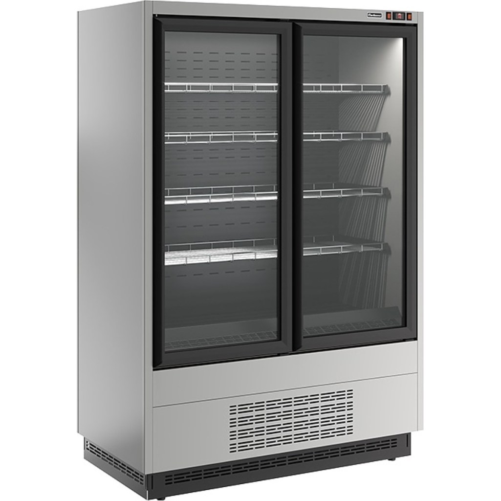 Горка холодильная Carboma FC20-07 VL 1,3-1 0300 STANDARD фронт X5L (версия 2.0) (9006-9005) используется на предприятиях общественного питания и торговли для кратковременного хранения и предпродажной демонстрации мяса, птицы и другой замороженной продукции.