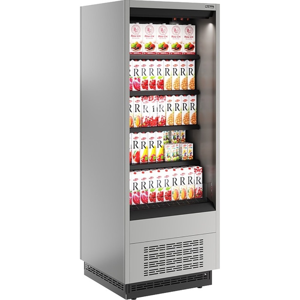 Горка холодильная Carboma FC20-07 VM 0,7-2 0030 (версия 2.0) (9006-9005) (бок металл с зеркалом) применяется на предприятиях общественного питания и торговли для охлаждения, кратковременного хранения и предпродажной демонстрации напитков, мяса, птицы, полуфабрикатов, молочных и гастрономических изделий.