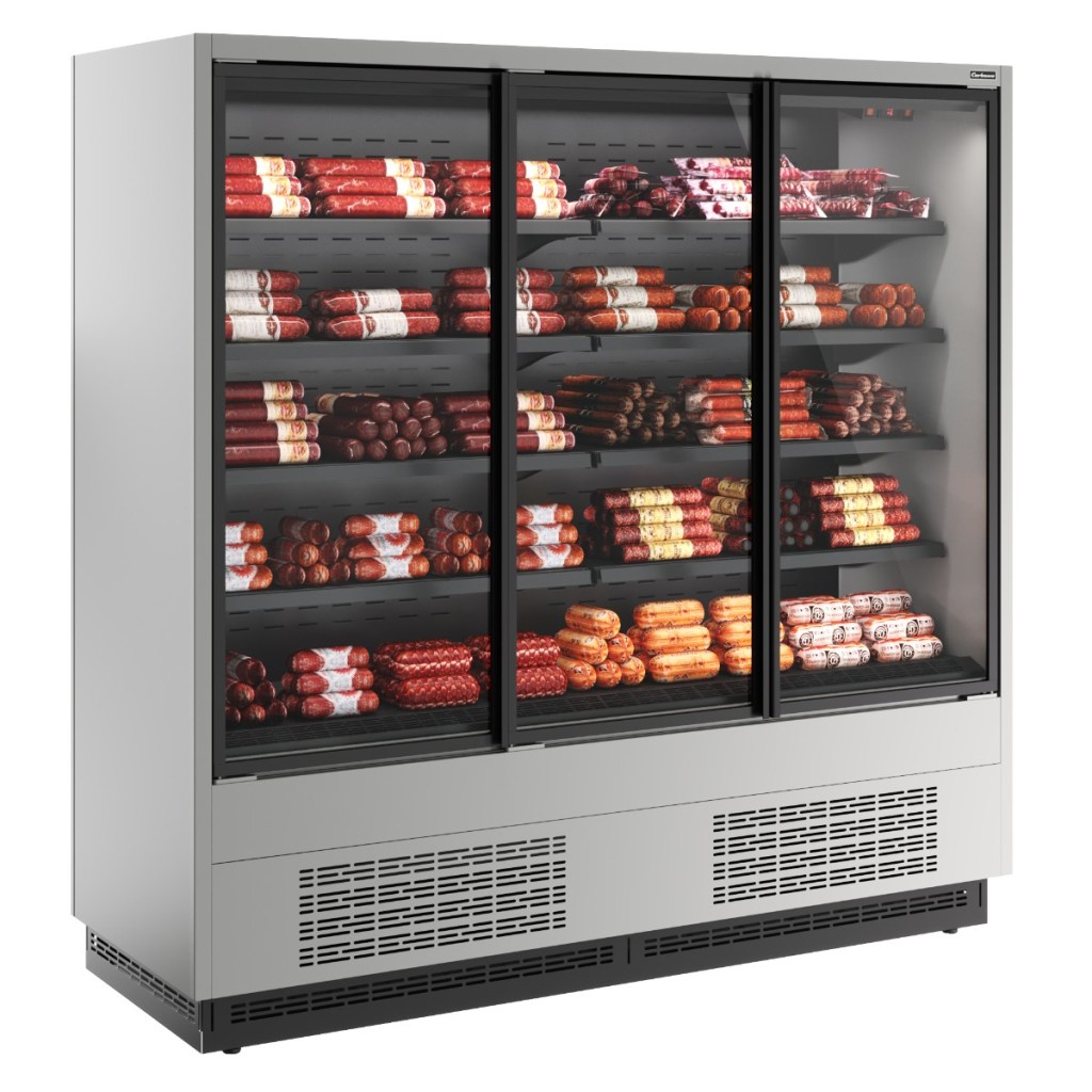 Горка холодильная Carboma FC20-07 VV 1,9-1 STANDARD фронт X1 (версия 2.0) (9006-9005) применяется в предприятиях общественного питания и торговли для эффективного охлаждения, кратковременного хранения и предпродажной демонстрации напитков, мясных и птицеводческих продуктов, полуфабрикатов, молочной и гастрономической продукции.
