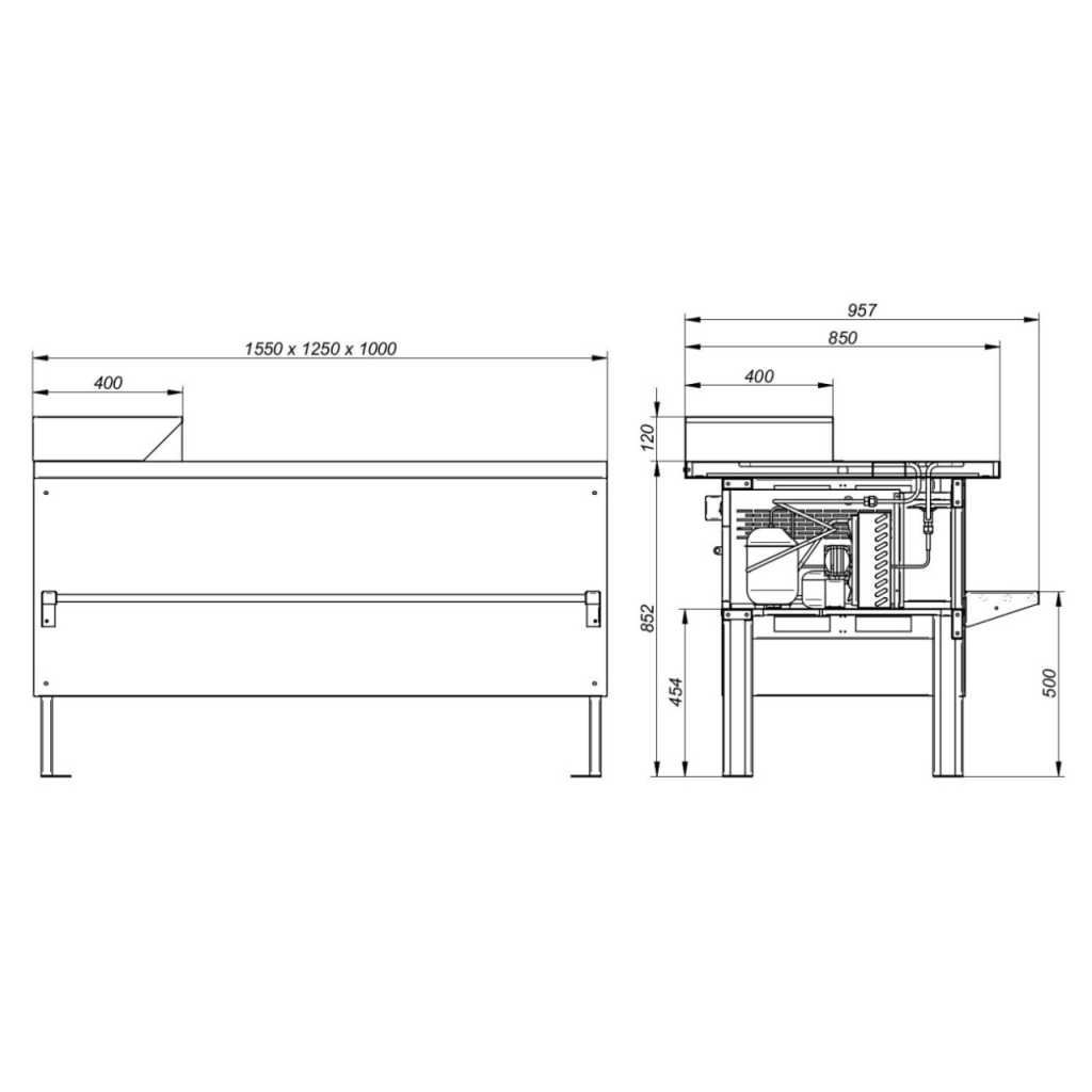 Каталог оборудования Холодильное оборудованиеМясные прилавкиПрилавок холодильный Марихолодмаш «Мясной» ПХС-1,25/0,85 (встроенное холодоснабжение) с креплением для перекладины Прилавок холодильный Марихолодмаш «Мясной» ПХС-1,25/0,85 (встроенное холодоснабжение) с креплением для перекладины Код товара: 000-149 Поделиться: WhatsAppTelegram СравнитьДобавить в КПВ избранное 0 69 585 ₽ В корзину 0 шт Под заказСамовывоз сегодня бесплатно Взять в кредит Купить в лизинг Получить консультацию в WhatsApp Описание Характеристики Отзывы 0 Прилавок холодильный Марихолодмаш «Мясной» ПХС-1,25/0,85 (встроенное холодоснабжение) с креплением для перекладины с охлаждаемым столом предназначен для демонстрации продажи, предварительно охлажденных мясных продуктов, в том числе полуфабрикатов, на предприятиях торговли. Изделие изготовлено в климатическом исполнении "У" категории размещения 3 по ГОСТ15150 для работы при температуре окружающего воздуха от +12 до +25°C и относительной влажности от 80 до 60%. Прилавок обеспечивает хранение продуктов в диапазоне температур полезного объема 0…+5°C. Стандартная комплектация: Столешница из нержавеющей стали (0,8мм) стандарт AISI 304-2B. Ящик с креплением для навесного замка (кроме ПХС-1,00/0,85). Дополнительный стол для кассового аппарата из нержавеющей сталистандарт AISI 304-2B. Упаковка в деревянную тару. Дополнительные опции: Труба-перекладина для прилавка холодильного среднетемпературного ПХС-1,25/0,85 (мясной, с креплением для перекладины). Крючок на трубу-перекладину прилавка холодильного среднетемпературного ПХС (мясной). Изображение товара, представленного на фото, может отличаться от его фактического вида. Показать все Габаритные размеры1250×955×850 ммДиапазон рабочей температурыот 0 до -2 °CТип охлажденияСтатическое Охлаждаемая площадь стола0,55 м²Тип оттайкиестественными теплопритоками Вес нетто97 кгДлина1250 БрендМариХолодМаш Оставить отзыв Еще никто не оставил отзыв на этот товар Похожие товары Перейти в каталог Под заказ 65 500 ₽ Прилавок холодильный Марихолодмаш «Мясной» ПХС-1,00/0,85 (встроенное холодоснабжение) с креплением для перекладины Под заказ 88 923 ₽ Прилавок холодильный Марихолодмаш «Мясной» ПХС-1,55/0,85 (встроенное холодоснабжение) с креплением для перекладины Цена по запросу Прилавок холодильный мясной Иней Lida-S 1,2 Цена по запросу Прилавок холодильный мясной Иней Lida-S 1,0 (охл.V) С этим товаром покупают В наличии 114 155 ₽ Шкаф холодильный универсальный Polair CV 107-S Под заказ 122 025 ₽ Шкаф морозильный Abat ШХн-0,5-02 Под заказ 164 799 ₽ Камера холодильная Север КХН-5,9 (1,4×2,6×2,24) Под заказ 75 647 ₽ Моноблок холодильный среднетемпературный Север MGM 103 S Ранее просмотрено Под заказ 147 978 ₽ Сплит-система холодильная среднетемпературная Intercold MCM 223/220 FT Evolution (опция -10° С) Под заказ 89 540 ₽ Сплит-система холодильная среднетемпературная Belluna Эконом S218 Под заказ 6 705 ₽ Направляющая линии Abat Аста 1500 мм в сборе (ЭМК70К-50-01СБ) Под заказ 65 500 ₽ Прилавок холодильный Марихолодмаш «Мясной» ПХС-1,00/0,85 (встроенное холодоснабжение) с креплением для перекладины Под заказ 79 628 ₽ Моноблок холодильный среднетемпературный МХМ MMN 114 Под заказ 180 100 ₽ Моноблок холодильный среднетемпературный Ариада AMS 330N Под заказ 65 036 ₽ Прилавок-мармит первых блюд МХМ ПМПЭ11