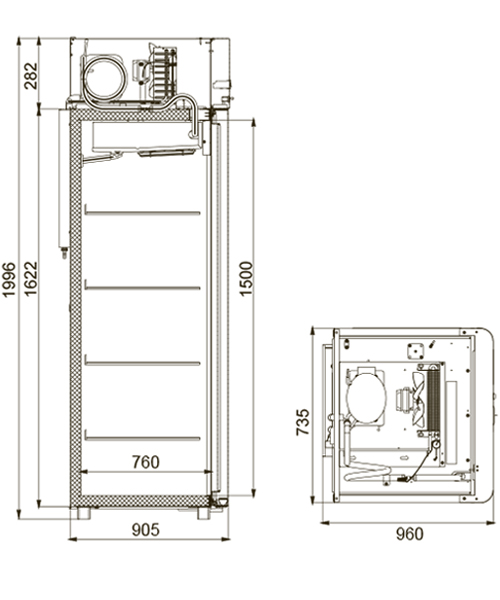 Каталог оборудования Холодильное оборудованиеШкафы холодильныеШкафы морозильные низкотемпературные до -18 °СШкаф морозильный Polair Polair CB107-Gm Alu Шкаф морозильный Polair Polair CB107-Gm Alu Код товара: 062-591 Поделиться: WhatsAppTelegram СравнитьДобавить в КПВ избранное 0 163 200 ₽ В корзину 0 шт Под заказСамовывоз сегодня бесплатно Взять в кредит Купить в лизинг Получить консультацию в WhatsApp Описание Характеристики Отзывы 0 Инструкции 4 Шкаф морозильный Polair Polair CB107-Gm Alu разработан для демонстрации и надежного хранения продуктов на предприятиях общественного питания и торговли. Цельнозаливной корпус выполнен из нержавеющей стали как снаружи, так и внутри (кроме задней стенки), что гарантирует высокую прочность и долговечность конструкции. Алюминиевые профили дверей и верхней панели подчеркивают современный и премиальный внешний вид шкафа. Оборудование рассчитано на работу при температуре окружающей среды до +40 °С и относительной влажности воздуха до 80%, что делает его надежным решением даже в сложных условиях эксплуатации. Основные особенности: Многофункциональная контрольная панель с жидкокристаллическим дисплеем Верхнее расположение агрегата, обеспечивающее удобный доступ к внутреннему объему Поддержка дистанционного мониторинга и записи данных в журнал контроллера (при использовании сетевой карты), а также передача данных через Bluetooth Клапан Шредера и компенсационный клапан с ПЭНом обогрева ПЭН обогрева трубки слива конденсата и ПЭН обогрева дверного проема для предотвращения образования наледи Распашные двери с полностью интегрированными ручками и эластичными магнитными уплотнителями, обеспечивающими максимальную герметизацию Микропереключатель, отключающий вентилятор и включающий подсветку при открытии дверей Встроенная внутренняя подсветка, улучшающая обзор содержимого Регулируемые по высоте ножки и педаль для удобного открывания двери Замок для обеспечения безопасности хранения 4 полки формата GN 2/1 (530×650 мм) с допустимой нагрузкой до 40 кг Толщина теплоизоляции корпуса — 61 мм Изображение товара, представленного на фото, может отличаться от его фактического вида. Показать все Габаритные размеры735×945×1996 ммДиапазон рабочей температурыдо -18 °CДлина735 ммГлубина450 ммВысота1996 ммОбъём700 лМатериал корпусаНержавеющая сталь Тип охлажденияДинамическое Тип управленияМеханическое Расход электроэнергии в сутки12 кВтКоличество полок2 штКоличество дверей1 штЗамокЕсть Тип двериМеталлическая Способ открыванияРаздвижные (купе) Напряжение220 ВХладагентR290 Расположение агрегатаНижнее Габариты в упаковке850×988×2160 ммВес нетто128 кгВес брутто152 кгБрендPolairВсе шкафы морозильные низкотемпературные до -18 °С POLAIRВсе шкафы морозильные низкотемпературные до -18 °С 4 уровня Оставить отзыв Еще никто не оставил отзыв на этот товар Схема POLAIR CB107-Gm Alu.jpgИнструкция на POLAIR CB107-Gm Alu.pdfДекларация о соответствии.pdfСертификат соответствия.pdf Похожие товары Перейти в каталог Под заказ 112 926 ₽ Шкаф морозильный Ангара 1000 КБК Под заказ 157 884 ₽ Шкаф морозильный Ангара 1500 М Под заказ 79 664 ₽ Шкаф морозильный со стеклом TEFCOLD UF100GCP Под заказ 133 025 ₽ Шкаф морозильный Polair DB105hd-S НовинкаВ наличии 56 070 ₽ Шкаф морозильный со стеклом Haier MSF100 В наличии 163 575 ₽ Шкаф морозильный МХМ Капри 1,5Н Под заказ 171 328 ₽ Шкаф морозильный Рапсодия R 1400 LX Под заказ 159 662 ₽ Шкаф морозильный Kayman К1500-М С этим т