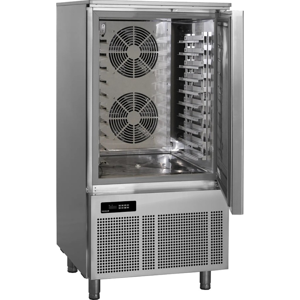 Каталог оборудования Холодильное оборудованиеШкафы шоковой заморозкиШкаф шоковой заморозки TEFCOLD BLC10 Шкаф шоковой заморозки TEFCOLD BLC10 Код товара: 010-393 Поделиться: WhatsAppTelegram СравнитьДобавить в КПВ избранное 0 400 649 ₽ В корзину 0 шт Под заказСамовывоз сегодня бесплатно Взять в кредит Купить в лизинг Получить консультацию в WhatsApp Описание Характеристики Отзывы 0 Инструкции 1 Шкаф шоковой заморозки TEFCOLD BLC10 предназначен для быстрого охлаждения и замораживания продуктов после тепловой обработки, сохраняя их вкусовые и питательные качества. Используется на предприятиях пищевой промышленности и торговли. Корпус и внутренняя обшивка выполнены из нержавеющей стали AISI 304, что обеспечивает долговечность и простоту санитарной обработки. Особенности: Автоматическое размораживание горячим воздухом; Четыре режима работы с программируемым термостатом; Встроенный градусник и термощуп для контроля температуры; Экологичный хладагент R404a; Перенавешиваемая самозакрывающаяся дверь; Направляющие под GN 1/1 и Euronorm; Регулируемые по высоте ножки; Полезный объем: 218 л; Энергопотребление: охлаждение — 0,09 кВт/кг, замораживание — 0,35 кВт/кг; Уровень шума: 49 дБ; Внутренние размеры: 660×420×870 мм; климатический класс 4. TEFCOLD BLC10 — надёжный и функциональный шкаф шоковой заморозки, обеспечивающий эффективное быстрое охлаждение и замораживание продуктов с минимальными энергозатратами и удобством эксплуатации.Изображение товара, представленного на фото, может отличаться от его фактического вида. Показать все Габаритные размеры804×815×1885 ммДиапазон рабочей температурыот -18 до +70 / от +3 до +70 °CШирина804 ммДлина815 ммВысота1885 ммОбъём368 лКоличество уровней10 штМощность1,298 кВтРасход электроэнергии в сутки21,6 кВтНапряжение230 ВТип охлажденияШоковая заморозка Размер гастроемкостей530×325, 600×400 ммТип гастроемкостейGN1/1 ХладагентR290 Вес хладагента0,15 кгКлиматический класс4 Производительность цикла заморозки28 кгПроизводительность цикла охлаждения40 кгГабариты в упаковке870×900×1730 ммВес нетто150 кгВес брутто190 кгБрендTefcoldВсе шкафы шоковой заморозки 10 уровней Оставить отзыв Еще никто не оставил отзыв на этот товар Инструкция на TEFCOLD BLC10 (англ.).pdf Похожие товары Перейти в каталог Под заказ 282 502 ₽ Шкаф шоковой заморозки COOLEQ CQF-10 В наличии 373 916 ₽ Шкаф шоковой заморозки Polair CR10-G (230 V) В наличии 237 915 ₽ Шкаф шоковой заморозки Polair CR10-L 380V С этим товаром покупают Под заказ 140 854 ₽ Шкаф морозильный МХМ Капри 1,12Н Под заказ 144 473 ₽ Стол морозильный Abat СХН-70-01 с бортом (дверь, дверь) Под заказ 164 799 ₽ Камера холодильная Север КХН-5,9 (1,4×2,6×2,24) Ранее просмотрено Под заказ 145 710 ₽ Витрина холодильная Carboma G110 ВХСу-1 внешний 90 динамика (G110 VM-5)