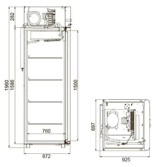 Каталог оборудования Холодильное оборудованиеШкафы холодильныеШкафы холодильные универсальные от -5 до +5 °СШкаф холодильный универсальный Polair CV107-Gm Alu Шкаф холодильный универсальный Polair CV107-Gm Alu Код товара: 062-610 Поделиться: WhatsAppTelegram СравнитьДобавить в КПВ избранное 0 149 175 ₽ В корзину 0 шт Под заказСамовывоз сегодня бесплатно Взять в кредит Купить в лизинг Получить консультацию в WhatsApp Описание Характеристики Отзывы 0 Инструкции 4 Шкаф холодильный универсальный Polair CV107-Gm Alu предназначен для демонстрации и надежного хранения продуктов на предприятиях общественного питания и торговли. Корпус шкафа цельнозаливной, выполнен из прочной стали с полимерным покрытием, что гарантирует высокую механическую прочность и длительный срок службы. Алюминиевые профили дверей и верхней панели подчеркивают современный, премиальный дизайн. Оборудование эффективно работает при температуре окружающей среды до 40 °С и влажности воздуха до 80%. Особенности модели: Многофункциональная контрольная панель (терморегулятор) для удобного управления параметрами. Жидкокристаллический дисплей, обеспечивающий чёткое отображение настроек и информации о работе шкафа. Клапан Шредера для удобного обслуживания холодильного контура. Распашной тип двери для легкого доступа к продуктам. Возможность изменить сторону открывания двери (при наличии опции), что делает установку более универсальной. Полностью интегрированные в профили дверей ручки, подчеркивающие стильный внешний вид и удобство использования. Встроенная светодиодная подсветка для отличной видимости содержимого шкафа. Надежный замок для защиты продуктов. Педаль для удобного открывания двери без использования рук. Высокая допустимая нагрузка на полку — до 40 кг, что позволяет хранить большие объемы продукции. Размер полки: GN 2/1 (530×650 мм), подходит для стандартных гастроемкостей. Толщина стенки корпуса — 43 мм, обеспечивающая отличную теплоизоляцию и снижение энергопотерь. Polair CV107-Gm Alu — это функциональный и стильный холодильный шкаф, который сочетает надежность, эргономичный дизайн и удобство эксплуатации. Использование прочных материалов и продуманная конструкция делают его идеальным решением для профессиональной кухни или торгового зала.Изображение товара, представленного на фото, может отличаться от его фактического вида. Показать все Габаритные размеры697×925×1960 ммДиапазон рабочей температурыот -5 до +5 °CДлина697 ммГлубина925 ммВысота695 ммОбъём700 лРазмер полки530×650 ммКоличество полок4 штКоличество дверей1 штТип оттайкиАвтоматическая Тип охлажденияДинамическое Тип управленияЭлектронное Материал корпусаНержавеющая сталь Тип двериМеталлическая ЗамокЕсть Способ открыванияРаспашные ХладагентR290 Холодильный агрегатВстроенный Расположение агрегатаВерхнее Потребление электроэнергии в сутки4,5 кВтПотребляемая мощность0,4 кВтНапряжение220 ВГабариты в упаковке800×1000×2150 ммВес нетто115 кгВес брутто140 кгБрендPolairВсе шкафы холодильные универсальные от -5 до +5 °С Из нержавейки Оставить отзыв Еще никто не оставил отзыв на этот товар Схема POLAIR CV107-Gm Alu.jpgИнструкция на POLAIR CV107-Gm Alu.pdfДекларация о соответствии.pdfСертификат соответствия.pdf Похожие товары Перейти в каталог Под заказ 95 458 ₽ Шкаф холодильный универсальный МХМ Капри ШХ 0,7 УМВ Под заказ 124 844 ₽ Шкаф холодильный универсальный Ангара 1500 РБК Под з