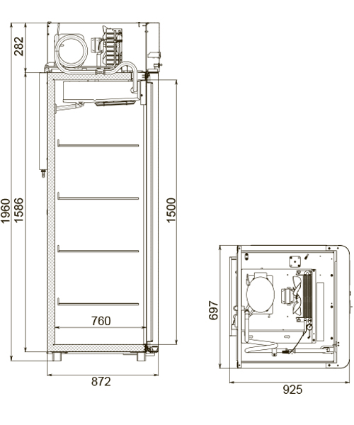 Каталог оборудования Холодильное оборудованиеШкафы холодильныеШкафы холодильные универсальные от -5 до +5 °СШкаф холодильный универсальный Polair CV107-Sm Alu Шкаф холодильный универсальный Polair CV107-Sm Alu Код товара: 062-611 Поделиться: WhatsAppTelegram СравнитьДобавить в КПВ избранное 0 129 370 ₽ В корзину 0 шт Под заказСамовывоз сегодня бесплатно Взять в кредит Купить в лизинг Получить консультацию в WhatsApp Описание Характеристики Отзывы 0 Инструкции 4 Шкаф холодильный универсальный Polair CV107-Sm Alu предназначен для демонстрации и надежного хранения продуктов на предприятиях общественного питания и торговли. Цельнозаливной корпус выполнен из стали с полимерным покрытием и оснащен алюминиевыми профилями, что обеспечивает высокую прочность конструкции и долговечность, а также подчеркивает современный премиальный дизайн. Шкаф работает при температуре окружающей среды до 40 °С и влажности воздуха до 80%. Особенности модели: Контрольная панель с быстрым доступом к настройкам, удобным возвратом в предыдущее меню и возможностью полного отключения без отдельной кнопки. Жидкокристаллический дисплей для наглядного отображения параметров. Клапан Шредера для обслуживания холодильной системы. Компенсационный клапан с ПЭНом обогрева, ПЭНы обогрева трубки слива конденсата и дверного проема — предотвращают образование льда и обеспечивают надежную работу. Распашной тип двери с возможностью изменения стороны открывания, что делает установку более гибкой. Полностью интегрированные ручки, удобные и стильные. Эластичные уплотнители с магнитными вставками для максимальной герметизации. Внутренняя подсветка вынесена на нижнюю часть фронтальной панели. Микропереключатель для автоматического отключения вентилятора и включения подсветки при открытии дверей. Регулируемые по высоте ножки для устойчивости на любом полу. Педаль для удобного открывания без рук. Замок для защиты содержимого. Высокая допустимая нагрузка на полку — до 40 кг. Размер полки: GN 2/1 (530×650 мм). Толщина стенки корпуса — 43 мм, что обеспечивает отличную теплоизоляцию. Polair CV107-Sm Alu — это функциональный и надежный холодильный шкаф с современным дизайном, который обеспечивает максимальную сохранность и удобный доступ к продуктам. Отлично подходит для ресторанов, кафе и магазинов, где важны надежность, стиль и энергоэффективность.Изображение товара, представленного на фото, может отличаться от его фактического вида. Показать все Габаритные размеры697×925×1960 ммДиапазон рабочей температурыот -5 до +5 °CДлина697 ммГлубина925 ммВысота1960 ммОбъём700 лРазмер полки530×650 ммКоличество полок4 штКоличество дверей1 штТип оттайкиАвтоматическая Тип охлажденияДинамическое Тип управленияЭлектронное Материал корпусаНержавеющая сталь Тип двериМеталлическая ЗамокЕсть Способ открыванияРаспашные ХладагентR290 Холодильный агрегатВстроенный Расположение агрегатаВерхнее Потребление электроэнергии в сутки4,5 кВтПотребляемая мощность0,4 кВтНапряжение220 ВГабариты в упаковке800×1000×2150 ммВес нетто113 кгВес брутто138 кгБрендPolairВсе шкафы холодильные универсальные от -5 до +5 °С Из нержавейки Оставить отзыв Еще никто не оставил отзыв на этот товар Схема POLAIR CV107-Sm.jpgИнструкция на POLAIR CV107-Sm.pdfДекларация о соответствии.pdfСертификат соответствия.pdf Похожие товары Перейти в каталог Под заказ 168 817 ₽ Шкаф холодильный Abat ШХ-1,4-02 В наличи