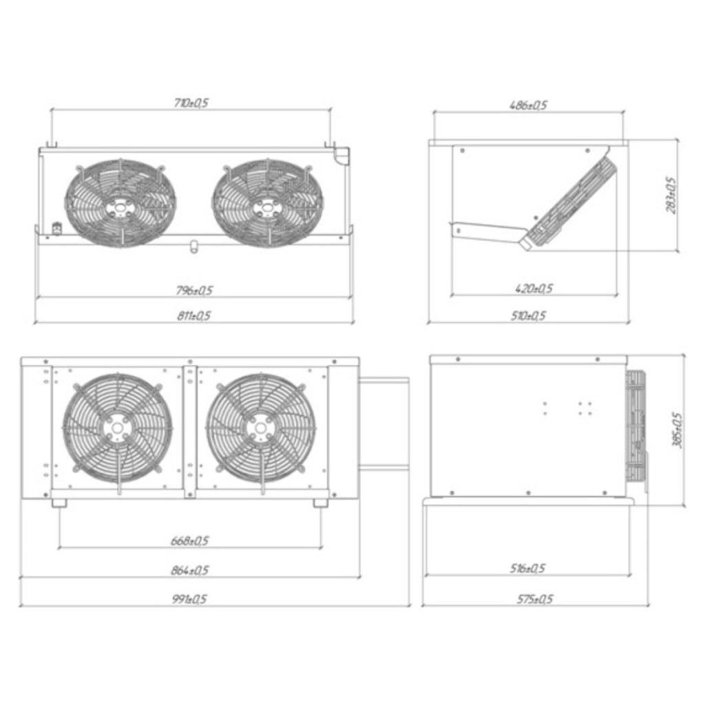 • Двойные осевые вентиляторы (2×250 мм) с расходом воздуха 1200 м³/ч — эффективное распределение холодного воздуха.