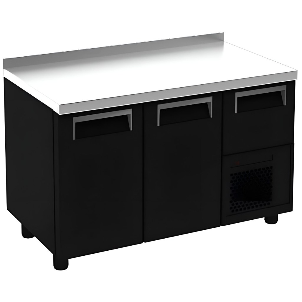 Стол холодильный барный Carboma T57 M2-1 9005-2 корпус черный, с бортом (BAR-250) предназначен для размещения кофемашин, а также охлаждения и хранения молока и кофейных зерен на предприятиях общественного питания и торговли.