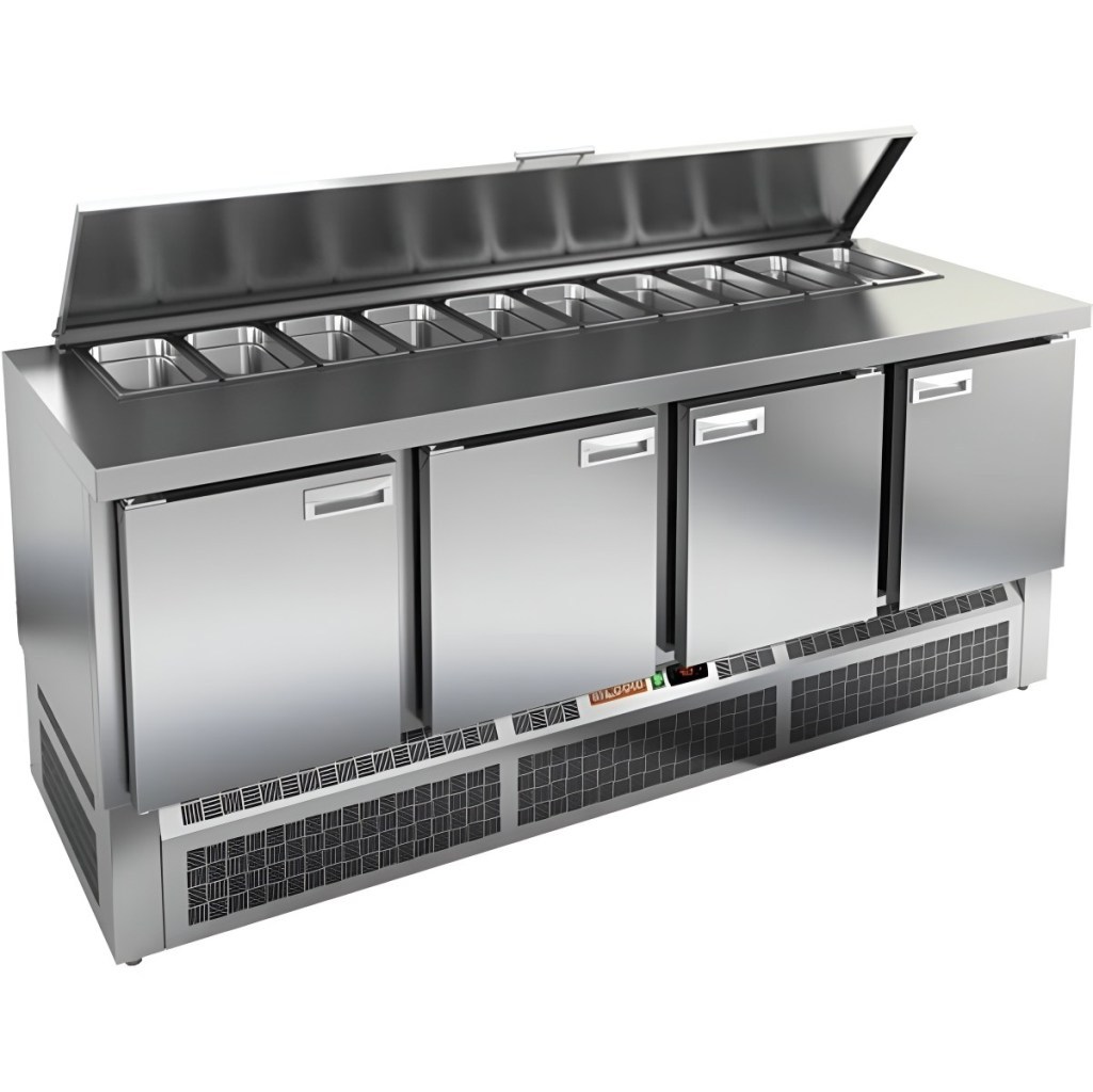 Каталог оборудования Холодильное оборудованиеСтолы охлаждаемыеСтолы холодильные для салатовСтол холодильный для салатов HiCold SLE1-11111GN (1/3) О с крышкой Стол холодильный для салатов HiCold SLE1-11111GN (1/3) О с крышкой Код товара: 064-545 Поделиться: WhatsAppTelegram СравнитьДобавить в КПВ избранное 0 172 162 ₽ В корзину 0 шт Под заказСамовывоз сегодня бесплатно Взять в кредит Купить в лизинг Получить консультацию в WhatsApp Описание Характеристики Отзывы 0 Инструкции 2 Стол холодильный для салатов HiCold SLE1-1111GN (1/3) О с крышкой предназначен для предприятий общественного питания и торговли. Он позволяет хранить и обрабатывать ингредиенты для пиццы, салатов и других блюд, а также охлаждать и кратковременно хранить скоропортящиеся продукты и напитки. Модель совмещает рабочую поверхность и охлаждаемый объем, что обеспечивает удобство работы повара: все необходимые компоненты всегда под рукой. Корпус и столешница выполнены из нержавеющей стали, что гарантирует долговечность и простоту ухода. Особенности: Динамическая система охлаждения — равномерное распределение температуры по всему объему. Автоматическая оттайка — упрощает уход за оборудованием. Электронная панель управления — удобная настройка температуры и режимов работы. 4 вместительные внутренние полки формата GN 1/1 — оптимальное хранение ингредиентов. Автоматические доводчики дверей с фиксатором открытого положения — комфорт и безопасность работы. Легкозаменяемые магнитные уплотнители — простота обслуживания. Открытая агрегатная часть — облегчает доступ для обслуживания. Регулируемые по высоте ножки — адаптация к рабочей поверхности. Размер полки: 530×325 мм (GN 1/1) Максимальная глубина гастроемкостей: 100 мм Столешница без борта и с крышкой: толщина столешницы и теплоизоляции — 50 мм, высота борта — 50 мм HiCold SLE1-1111GN (1/3) О с крышкой — надежный и удобный стол для профессиональной кухни. Он обеспечивает эффективное охлаждение и хранение ингредиентов, а комбинированная рабочая поверхность с холодильным объемом упрощает работу повара, делая процесс приготовления быстрее и удобнее.Изображение товара, представленного на фото, может отличаться от его фактического вида. Показать все Габаритные размеры1970×700×800 ммДиапазон рабочей температурыот +2 до +10 °CРасположение агрегатаНижнее Материал столешницыНержавеющая Тип столаС дверьми Тип двериГлухая Объём505 лКоличество дверей4 штТип гастроемкостейGN 1/3 Размер полки530×325 ммНапряжение220 ВМощность0,46 кВтТип охлажденияДинамический Тип оттайкиАвтоматическая СтолешницаС бортом Вес нетто135 кгВес брутто195 кгБрендHicold Оставить отзыв Еще никто не оставил отзыв на этот товар Паспорт на HICOLD SLE1-1111GN (1/3) О.pdfДекларация о соответствии.pdf Ранее просмотрено Под заказ 235 882 ₽ Стол холодильный для салатов HiCold SLE2-222GN (1/6) О без крышки Под заказ 255 862 ₽ Стол холодильный для салатов HiCold SL2-222GN (1/6) без крышки Под заказ 268 381 ₽ Компрессорно-конденсаторный блок Север ACM-ZB21 Под заказ 204 472 ₽ Стол холодильный для салатов HiCold SL1-22SN (1/3) с крышкой Под заказ 127 432 ₽ Стол холодильный для салатов HiCold SLE2-11GN (1/6) З с крышкой Под заказ 260 092 ₽ Стол холодильный для салатов HiCold SL1-222GN (1/3) с крышкой