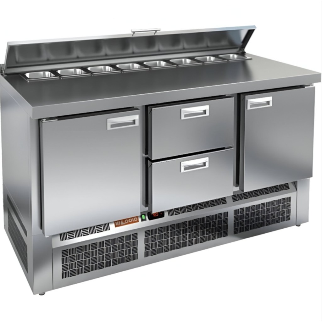 Каталог оборудования Холодильное оборудованиеСтолы охлаждаемыеСтолы холодильные для салатовСтол холодильный для салатов HiCold SLE1-121GN (1/3) с крышкой Стол холодильный для салатов HiCold SLE1-121GN (1/3) с крышкой Код товара: 064-917 Поделиться: WhatsAppTelegram СравнитьДобавить в КПВ избранное 0 178 192 ₽ В корзину 0 шт Под заказСамовывоз сегодня бесплатно Взять в кредит Купить в лизинг Получить консультацию в WhatsApp Описание Характеристики Отзывы 0 Стол холодильный для салатов HiCold SLE1-121GN (1/3) с крышкой предназначен для использования на предприятиях общественного питания и торговли. Он служит для хранения и обработки ингредиентов, используемых при приготовлении салатов, пиццы, закусок и других блюд. Также стол подходит для охлаждения и кратковременного хранения скоропортящихся продуктов и напитков. Модель сочетает в себе прочную рабочую поверхность и охлаждаемый внутренний объем, что упрощает процесс приготовления: все необходимые ингредиенты всегда под рукой. Корпус и столешница изготовлены из нержавеющей стали, устойчивой к воздействию влаги, механическим повреждениям и легко поддающейся очистке. Металлическая крышка защищает продукты от загрязнений и сохраняет их свежесть. Особенности: Электронная панель управления — обеспечивает точное и удобное регулирование температуры внутри камеры. 3 глухие дверцы с автоматическими доводчиками и фиксацией — повышает удобство использования, особенно при загрузке и выгрузке продуктов. Салат-бар вмещает 8 гастроемкостей — обеспечивает быстрый доступ к разнообразным ингредиентам. Автоматические доводчики дверей с фиксатором — улучшают эргономику и предотвращают случайное захлопывание. Магнитные уплотнители — легко заменяются и обеспечивают хорошую теплоизоляцию. Открытая агрегатная часть — облегчает доступ к элементам системы охлаждения для технического обслуживания. Регулируемые ножки — позволяют установить стол на неровной поверхности. Максимальная глубина гастроемкостей — 100 мм — подходит для хранения различных типов продуктов. Толщина столешницы — 50 мм — обеспечивает надежность и устойчивость при работе. Высота борта — 50 мм — защищает от проливания и загрязнений. Теплоизоляция толщиной 50 мм — способствует поддержанию стабильной температуры и экономии энергии. HiCold SLE1-121GN (1/3) с крышкой — это практичное и многофункциональное решение для профессиональной кухни. Благодаря вместительности, продуманной конструкции и надежной термоизоляции, стол позволяет организовать эффективное рабочее пространство и обеспечивает сохранность свежести продуктов в течение всего рабочего дня. Изображение товара, представленного на фото, может отличаться от его фактического вида. Показать все Габаритные размеры1485×700×850 ммДиапазон рабочей температурыот +2 до +10 °CРасположение агрегатаНижнее Материал столешницыНержавеющая Тип столаС дверьми Тип двериГлухая Объём375 лКоличество дверей3 штТип гастроемкостейGN 1/3 Размер полки530×325 ммНапряжение220 ВМощность0,2 кВтТип охлажденияДинамическое Тип оттайкиАвтоматическая СтолешницаС бортом Габариты в упаковке1700×850×1080 ммВес нетто115 кгВес брутто160 кгБрендHicold Оставить отзыв Еще никто не оставил отзыв на этот товар Ранее просмотрено Под заказ 294 202 ₽ Стол холодильный для салатов HiCold SLE2-2222GN (1/6) с крышкой Под заказ 189 982 ₽ Стол холодильный для салатов HiCold SL2-111GN (1/6) М 