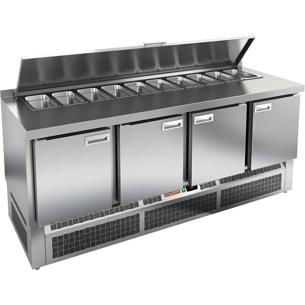 Каталог оборудования Холодильное оборудованиеСтолы охлаждаемыеСтолы холодильные для салатовСтол холодильный для салатов HiCold SLE2-1111GN (1/6) Стол холодильный для салатов HiCold SLE2-1111GN (1/6) Код товара: 061-995 Поделиться: WhatsAppTelegram СравнитьДобавить в КПВ избранное 0 171 801 ₽ В корзину 0 шт В наличии на 1 складеДоступно для заказа 1 шт.Наличие на складахМоскваМО, Бритово, Раменский гор. округ, Складской комплекс ССТ, корп. 2, секция 2В наличии 1 шт.Самовывоз сегодня бесплатно Расчет стоимости доставкиОткудаМоскваКудаМоскваСанкт-ПетербургАстраханьБарнаулБелгородБрянскВладивостокВолгоградВоронежЕкатеринбургИвановоИжевскИркутскКазаньКалининградКемеровоКировКраснодарКрасноярскКурскЛипецкМагнитогорскМахачкалаНабережные ЧелныНижний НовгородНижний ТагилНовокузнецкНовосибирскОмскОренбургПензаПермьПятигорскРостов-на-ДонуРязаньСамараСаратовСимферопольСтавропольТверьТольяттиТомскТулаТюменьУлан-УдэУльяновскУфаХабаровскЧебоксарыЧелябинскЯрославльРассчитатьРасчет стоимости доставки указан приблизительный, более точный расчет Вам может осуществить сотрудник транспортной компании. Взять в кредит Купить в лизинг Получить консультацию в WhatsApp Описание Характеристики Отзывы 0 Инструкции 2 Стол холодильный для салатов HiCold SLE2-1111GN (1/6) — это профессиональный салатный стол, предназначенный для использования в кафе, ресторанах, пиццериях и других предприятиях общественного питания. Он совмещает в себе просторную рабочую поверхность и охлаждаемый объем, обеспечивая удобство и эффективность при приготовлении различных блюд — от салатов до пиццы. Благодаря корпусу и столешнице из нержавеющей стали, оборудование устойчиво к коррозии, легко очищается и соответствует санитарным требованиям. Ключевые особенности: Электронная панель управления — обеспечивает точное регулирование температуры и удобство в эксплуатации. 4 вместительные полки формата GN 1/1 — позволяют организовать хранение большого объема продуктов и ингредиентов. Салат-бар вмещает до 11 гастроемкостей — оптимален для широкого ассортимента заготовок. Автоматические доводчики дверей с фиксацией — повышают удобство использования, особенно при загрузке и выгрузке продуктов. Магнитные уплотнители — легко заменяются и обеспечивают плотное прилегание, предотвращая утечку холода. Открытая агрегатная часть — облегчает техническое обслуживание. Регулируемые ножки — позволяют установить стол на любой поверхности, компенсируя неровности пола. Глубина гастроемкостей — до 100 мм, толщина столешницы — 50 мм, высота борта — 50 мм, толщина теплоизоляции — 50 мм — обеспечивают стабильное охлаждение и прочность конструкции. HiCold SLE2-1111GN — это функциональный и вместительный салатный стол, который идеально подходит для профессиональных кухонь с интенсивной загрузкой. Он сочетает в себе надежность, удобство и продуманную конструкцию для максимальной производительности на рабочем месте.Изображение товара, представленного на фото, может отличаться от его фактического вида. Показать все Габаритные размеры1970х700х850 ммДиапазон рабочей температурыот +2 до +10 °CРасположение агрегатаНижнее Материал столешницыНержавеющая Тип столаС дверьми Тип двериГлухая Объём505 лКоличество дверей4 штТип гастроемкостейGN 1/6 Размер полки530х325 ммНапряжение220 ВМощность0,46 кВтТип охлажденияДинамиче