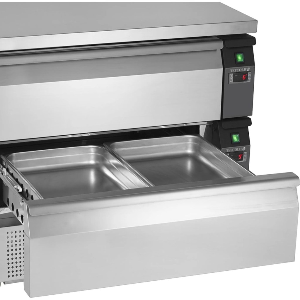 Каталог оборудования Холодильное оборудованиеСтолы охлаждаемыеСтолы холодильные комбинированныеСтол холодильно-морозильный TEFCOLD UD2-2 Стол холодильно-морозильный TEFCOLD UD2-2 Код товара: 066-726 Поделиться: WhatsAppTelegram 0 Цена по запросу Получить консультацию в WhatsApp Описание Характеристики Отзывы 0 Инструкции 2 Стол холодильно-морозильный TEFCOLD UD2-2 предназначен для раскатки теста, обработки ингредиентов и кратковременного хранения продуктов на предприятиях общественного питания и торговли. Модель оснащена столешницей без борта, двумя выдвижными ящиками формата GN2/1, термометром и четырьмя поворотными колесами, два из которых снабжены тормозами. Корпус и внутренняя отделка выполнены из прочной нержавеющей стали марки SS304, что обеспечивает надежность, устойчивость к коррозии и лёгкость в уходе. Особенности модели: Эффективная система динамического охлаждения для равномерного распределения температуры Автоматическая оттайка, исключающая образование наледи Современный электронный контроллер для точного управления параметрами Возможность переключения между холодильным и морозильным режимами Вместительные выдвижные ящики GN2/1 с прочными направляющими (до 60 кг на ящик) Прочная столешница, выдерживающая нагрузку до 240 кг Экологически безопасный хладагент R290 Климатический класс: 5 Мобильная конструкция на поворотных колесах с фиксаторами Общий объём: 179 л, полезный: 102 л Температурный диапазон: • Холодильный режим — от 1 до 4 °C • Морозильный режим — от −21 до −18 °C Входная мощность: 0,54 кВт Энергопотребление: 3,66 кВт/сутки (1336 кВт⋅ч/год) Уровень шума: 54 дБ Подзарядка хладагентом: 140 г Внутренние размеры: 675×565×470 мм TEFCOLD UNI-DRAWER UD2-2 — компактный и функциональный холодильный стол, сочетающий удобство работы и надёжное охлаждение. Благодаря прочной конструкции из нержавеющей стали, вместительным ящикам и возможности выбора режима работы (охлаждение или заморозка), модель идеально подходит для профессиональных кухонь и предприятий общественного питания.Изображение товара, представленного на фото, может отличаться от его фактического вида. Показать все Габаритные размеры905×700×865 ммТемпература морозильного отделенияот -21 до -18 °CТемпература холодильного отделенияот +1 до +4 °CРасположение агрегатаНижнее Материал столешницыНержавеющая Тип столаС дверьми Тип двериГлухая Общий объем179 лПолезный объем102 лКоличество ящиков2 штКлиматический класс5 Напряжение220 ВМощность0,54 кВтТип охлажденияДинамический Тип оттайкиАвтоматическая ХладагентR290 Габариты в упаковке980×770×1000 ммВес нетто113 кгВес брутто125 кгБрендTefcold Оставить отзыв Еще никто не оставил отзыв на этот товар Инструкция на TEFCOLD UNI-DRAWER UD2-2.pdfСпецификация на TEFCOLD UNI-DRAWER UD2-2.pdf Ранее просмотрено Под заказ 99 981 ₽ Стол холодильный среднетемпературный HiCold SNE 1/TN BOX без столещницы Под заказ 174 952 ₽ Стол холодильный среднетемпературный HiCold SNG 111 BR2 HT О