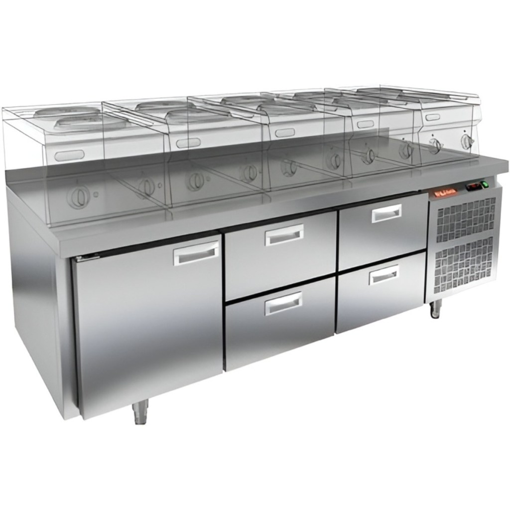 Каталог оборудования Холодильное оборудованиеСтолы охлаждаемыеСтолы холодильные под тепловое оборудованиеСтол охлаждаемый HiCold SN 122/TN LT под тепловое оборудование Стол охлаждаемый HiCold SN 122/TN LT под тепловое оборудование Код товара: 065-547 Поделиться: WhatsAppTelegram СравнитьДобавить в КПВ избранное 0 193 042 ₽ В корзину 0 шт Под заказСамовывоз сегодня бесплатно Взять в кредит Купить в лизинг Получить консультацию в WhatsApp Описание Характеристики Отзывы 0 Инструкции 2 Стол охлаждаемый HiCold SN 122/TN LT SH под тепловое оборудование предназначен для обработки ингредиентов и временного хранения скоропортящихся продуктов и напитков на предприятиях общественного питания и торговли. Устройство совмещает функции рабочей поверхности и холодильной камеры. Столешница рассчитана на установку теплового оборудования: под рабочей поверхностью встроен ДСП-лист, который укрепляет конструкцию и препятствует проникновению тепла внутрь. Такое решение обеспечивает дополнительную жесткость, позволяет рационально использовать рабочее пространство и повышает эффективность работы на кухне. Особенности: 1 распашная дверь — обеспечивает удобный доступ к внутреннему пространству. 4 выдвижных ящика — обеспечивают удобный доступ к продуктам и инвентарю Автоматические доводчики дверей с фиксатором открытого положения повышают эргономику и способствуют сохранению холода. Легкозаменяемые магнитные уплотнители обеспечивают плотное прилегание дверей и лёгкость в обслуживании. Открытая агрегатная часть упрощает доступ к компрессору при техническом обслуживании. Регулируемые по высоте низкие ножки — удобная установка и устойчивость стола даже на неровной поверхности. Толщина столешницы — 50 мм обеспечивает прочность рабочей поверхности. Высота борта — 50 мм предотвращает падение продуктов и инвентаря. Толщина теплоизоляции — 50 мм способствует энергоэффективности и стабильному температурному режиму. HiCold SN 122/TN LT SH — это надёжное и удобное оборудование, сочетающее охлаждение и рабочее пространство. Благодаря продуманной конструкции и совместимости с гастроемкостями GN 1/1, стол станет практичным решением для кухни любого профессионального уровня.Изображение товара, представленного на фото, может отличаться от его фактического вида. Показать все Габаритные размеры1835×600×675 ммДиапазон рабочей температурыот -2 до +10 °CМатериал столешницыНержавеющая Расположение агрегатаБоковое Объём320 лТип столаС дверьми и ящиками Тип двериГлухая Количество дверей1 штКоличество ящиков4 штРазмер полки430×325 ммНапряжение220 ВМощность0,46 кВтТип охлажденияДинамический Тип оттайкиАвтоматическая СтолешницаС бортом Габариты в упаковке1935×740×970 ммВес нетто162 кгВес брутто182 кгБрендHicold Оставить отзыв Еще никто не оставил отзыв на этот товар Паспорт на HICOLD SN 122TN LT SH.pdfДекларация о соответствии.pdf Похожие товары Перейти в каталог В наличии 128 777 ₽ Стол морозильный Cooleq GN3200BT с бортом Под заказ 166 404 ₽ Стол морозильный Abat СХН-70-02 без борта (дверь, дверь, дверь) С этим товаром покупают В наличии 140 675 ₽ Шкаф холодильный универсальный Polair CV 110-S Под заказ 76 010 ₽ Газовый лавовый гриль Abat ГЛК-40Н Ранее просмотрено В наличии 111 412 ₽ Стол охлаждаемый HiCold GN 11/TN LT под тепловое оборудование