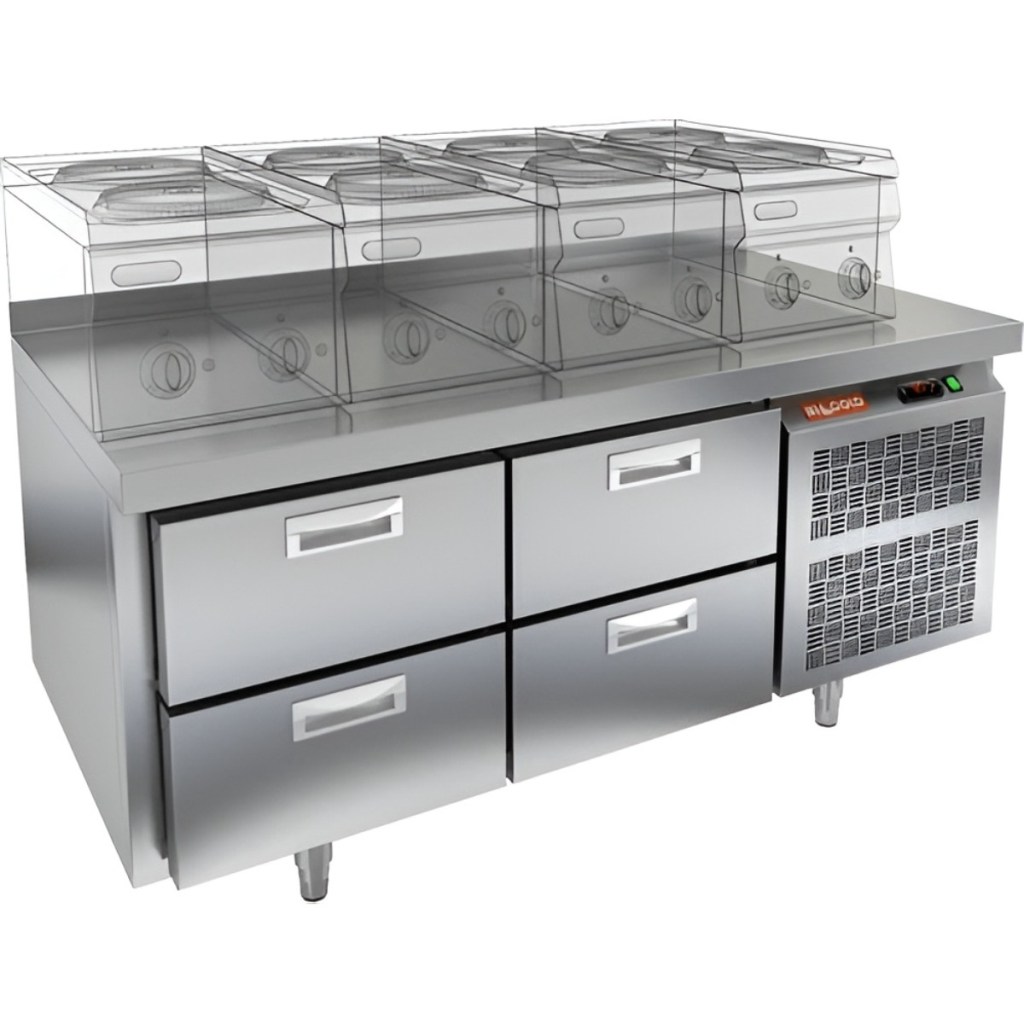Каталог оборудования Холодильное оборудованиеСтолы охлаждаемыеСтолы холодильные под тепловое оборудованиеСтол охлаждаемый HiCold SN 22/TN LT М под тепловое оборудование Стол охлаждаемый HiCold SN 22/TN LT М под тепловое оборудование Код товара: 065-538 Поделиться: WhatsAppTelegram СравнитьДобавить в КПВ избранное 0 194 662 ₽ В корзину 0 шт Под заказСамовывоз сегодня бесплатно Взять в кредит Купить в лизинг Получить консультацию в WhatsApp Описание Характеристики Отзывы 0 Инструкции 2 Стол охлаждаемый HiCold SN 22/TN LT М под тепловое оборудование предназначен для обработки ингредиентов и временного хранения скоропортящихся продуктов и напитков на предприятиях общественного питания и торговли. Устройство совмещает функции рабочей поверхности и холодильной камеры. Столешница рассчитана на установку теплового оборудования: под рабочей поверхностью встроен ДСП-лист, который укрепляет конструкцию и препятствует проникновению тепла внутрь. Такое решение обеспечивает дополнительную жесткость, позволяет рационально использовать рабочее пространство и повышает эффективность работы на кухне. Особенности: 4 выдвижных ящика — обеспечивают удобный доступ к продуктам и инвентарю Автоматические доводчики дверей с фиксатором открытого положения повышают эргономику и способствуют сохранению холода. Легкозаменяемые магнитные уплотнители обеспечивают плотное прилегание дверей и лёгкость в обслуживании. Открытая агрегатная часть упрощает доступ к компрессору при техническом обслуживании. Колёса (2 со стопором, 2 без стопора) — обеспечивают мобильность и удобство размещения стола на кухне. Толщина столешницы — 50 мм обеспечивает прочность рабочей поверхности. Высота борта — 50 мм предотвращает падение продуктов и инвентаря. Толщина теплоизоляции — 50 мм способствует энергоэффективности и стабильному температурному режиму. HiCold SN 22/TN LT М — это надёжное и удобное оборудование, сочетающее охлаждение и рабочее пространство. Благодаря продуманной конструкции и совместимости с гастроемкостями GN 1/1, стол станет практичным решением для кухни любого профессионального уровня.Изображение товара, представленного на фото, может отличаться от его фактического вида. Показать все Габаритные размеры1390×600×675 ммДиапазон рабочей температурыот -2 до +10 °CМатериал столешницыНержавеющая Расположение агрегатаБоковое Объём220 лТип столаС ящиками Количество ящиков4 штРазмер полки530×325 ммНапряжение220 ВМощность0,22 кВтТип охлажденияДинамический Тип оттайкиАвтоматическая СтолешницаС бортом Габариты в упаковке1550×750×850 ммВес нетто125 кгВес брутто147 кгБрендHicold Оставить отзыв Еще никто не оставил отзыв на этот товар Паспорт на HICOLD SN 22TN LT М.pdfДекларация о соответствии.pdf Похожие товары Перейти в каталог В наличии 77 661 ₽ Стол холодильный среднетемпературный HiCold GN 11/TN W Под заказ 125 670 ₽ Стол холодильный среднетемпературный Abat СХС-70-01 с бортом (дверь, дверь) С этим товаром покупают В наличии 201 690 ₽ Шкаф морозильный Полюс Carboma F1400 В наличии 195 030 ₽ Плита индукционная Аbat КИП-47Н Ранее просмотрено Под заказ 187 607 ₽ Компрессорно-конденсаторный блок Север BGS 330 S В наличии 111 556 ₽ Фризер для жареного мороженого HURAKAN HKN-FIC50SXL Под заказ 174 848 ₽ Компрессорно-конденсаторный блок Север MGS 330 S Под заказ 224 092 ₽ Стол охлаждаемый HiCold GN 222/TN LT под тепловое оборудование Под заказ 176 940 ₽ Горка пристенная витрина МХМ Со