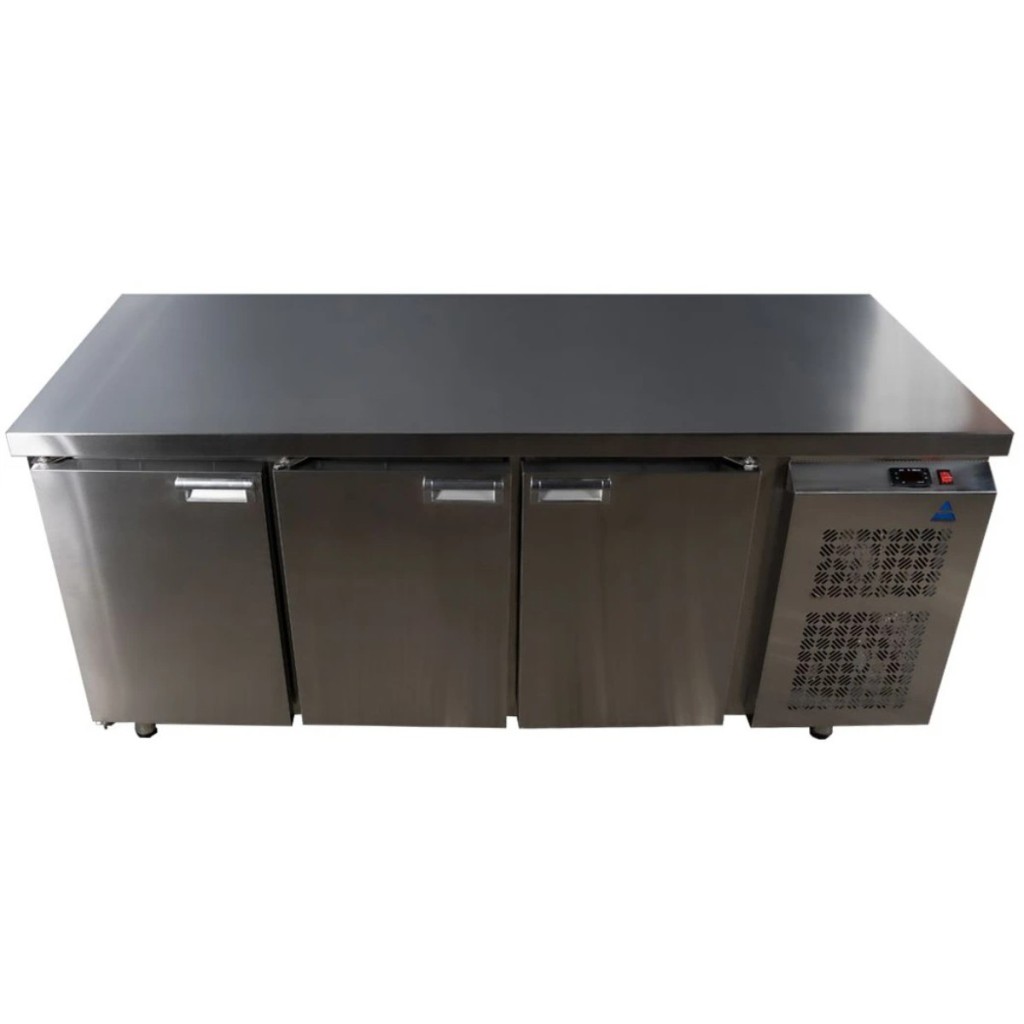 Каталог оборудования Холодильное оборудованиеСтолы охлаждаемыеСтолы холодильные среднетемпературныеСтол холодильный среднетемпературный Ангара СХБ 1,835-700 Стол холодильный среднетемпературный Ангара СХБ 1,835-700 Код товара: 066-353 Поделиться: WhatsAppTelegram СравнитьДобавить в КПВ избранное 0 140 538 ₽ В корзину 0 шт Под заказСамовывоз сегодня бесплатно Взять в кредит Купить в лизинг Получить консультацию в WhatsApp Описание Характеристики Отзывы 0 Стол холодильный среднетемпературный Ангара СХБ 1,835-700 предназначен для обработки ингредиентов и кратковременного хранения скоропортящихся продуктов и напитков на предприятиях общественного питания и торговли. Модель сочетает компактные размеры, функциональность и надёжность, обеспечивая удобство работы на кухне. Особенности модели: Электронное управление — интуитивно понятная панель позволяет точно регулировать температурный режим и контролировать работу устройства. Корпус и столешница из нержавеющей стали — обеспечивают долговечность, устойчивость к коррозии и лёгкость в уходе. Три дверцы и три полки размером 530×325 мм — обеспечивают удобный доступ к продуктам и рациональное использование внутреннего пространства. Регулируемые ножки — позволяют адаптировать высоту стола под индивидуальные условия рабочей зоны. Автоматические доводчики дверей с фиксацией — двери закрываются плавно и остаются зафиксированными в открытом положении при необходимости. Съёмные магнитные уплотнители — упрощают чистку и замену, поддерживая герметичность и эффективность охлаждения. Диапазон температур: -2…+10 °C / +2…+10 °C, что позволяет использовать стол как для охлаждённых, так и для быстро портящихся продуктов. Холодильный стол Ангара СХБ 1,835-700 — это практичное и надёжное решение для профессиональных кухонь и торговых точек. Совмещение эргономичной конструкции, долговечных материалов и точного электронного контроля температуры обеспечивает удобство эксплуатации и эффективное хранение продуктов в оптимальных условиях.Изображение товара, представленного на фото, может отличаться от его фактического вида. Показать все Габаритные размеры1835×700×850 ммДиапазон рабочей температурыот -2 до +10 °CРасположение агрегатаБоковое Материал столешницыНержавеющая Тип столаС дверьми Тип двериГлухая Объём505 лКоличество дверей3 штКоличество полок3 штРазмер полки530×325 ммНапряжение220 ВМощность0,46 кВтТип охлажденияДинамическое Тип оттайкиАвтоматическая СтолешницаС бортом БрендАнгараВсе нержавеющие холодильные столы Все холодильные столы с бортом Оставить отзыв Еще никто не оставил отзыв на этот товар Ранее просмотрено В наличии 8 300 ₽ Рисоварка HURAKAN HKN-SDR230