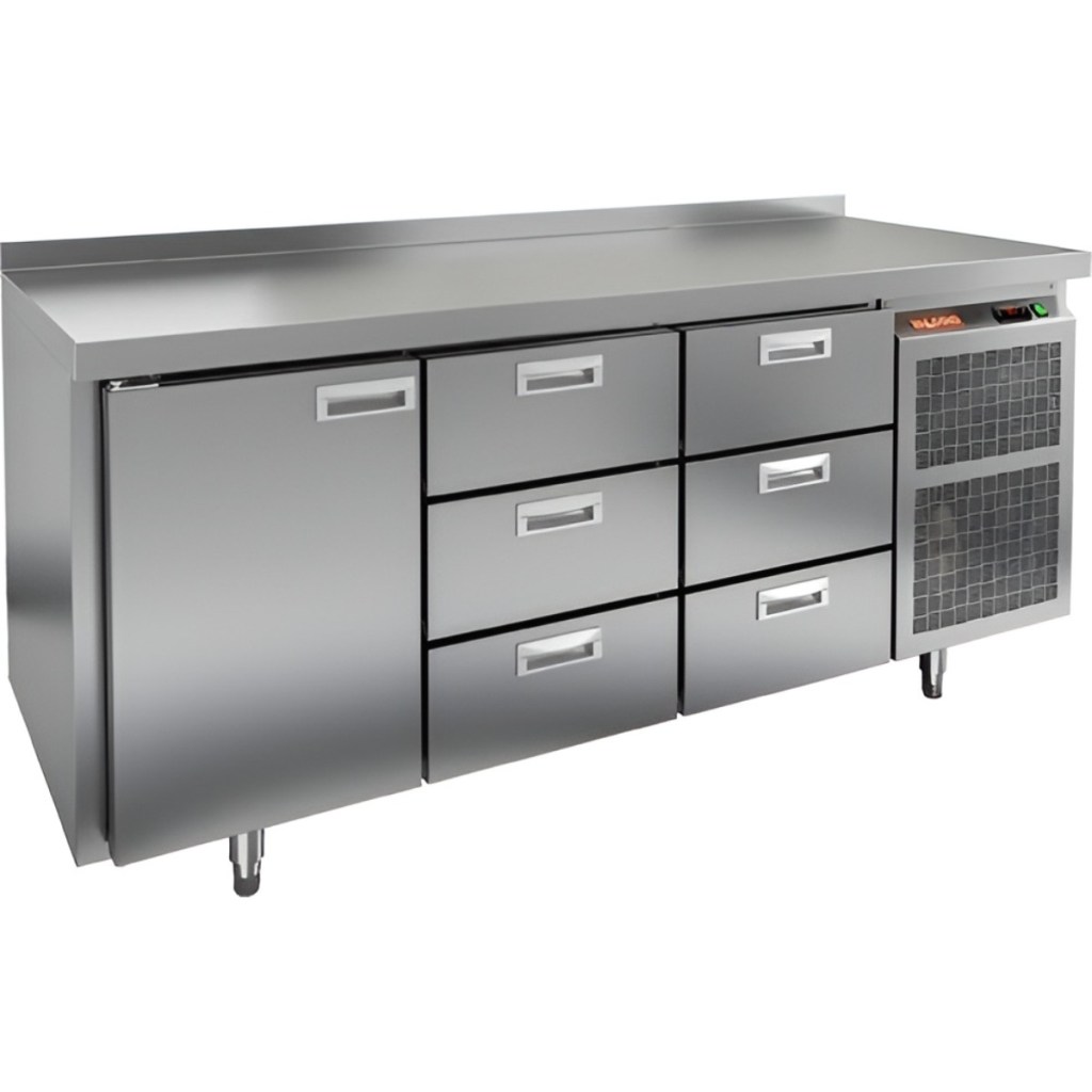 Каталог оборудования Холодильное оборудованиеСтолы охлаждаемыеСтолы морозильные низкотемпературныеСтол морозильный HiCold BN 133/BT Стол морозильный HiCold BN 133/BT Код товара: 062-081 Поделиться: WhatsAppTelegram СравнитьДобавить в КПВ избранное 0 265 851 ₽ В корзину 0 шт В наличииСамовывоз сегодня бесплатно Взять в кредит Купить в лизинг Получить консультацию в WhatsApp Описание Характеристики Отзывы 0 Инструкции 2 Стол морозильный HiCold BN 133/BT предназначен для заморозки и хранения скоропортящихся продуктов и напитков на предприятиях общественного питания и торговли. Он сочетает в себе удобство использования и высокую эффективность. Управление осуществляется с помощью простой и понятной электронной панели. Конструкция корпуса и столешницы выполнена из прочной нержавеющей стали, что обеспечивает долговечность и гигиеничность оборудования. В комплект поставки входит 1 полка, позволяющая организовать базовое хранение продуктов внутри охлаждаемого объема. Особенности: Автоматические доводчики дверей с фиксацией в открытом положении — для комфортной загрузки и выгрузки продуктов; Легкозаменяемые магнитные уплотнители — обеспечивают плотное закрытие дверей и снижают теплопотери; Регулируемые по высоте ножки — позволяют устанавливать стол на неровных поверхностях; Толщина столешницы — 50 мм; Толщина теплоизоляции — 50 мм — для сохранения стабильной температуры; Высота борта — 50 мм — предотвращает затекание жидкости и обеспечивает чистоту на рабочем месте. HiCold BN 133/BT — это надежное и практичное оборудование, обеспечивающее качественное хранение продуктов и удобство в ежедневной работе персонала кухни.Изображение товара, представленного на фото, может отличаться от его фактического вида. Показать все Габаритные размеры1835×600×850 ммДиапазон рабочей температурыот -18 до -10 °CРасположение агрегатаБоковое Материал столешницыНержавеющая Тип столаС дверьми и ящиками Тип двериГлухая Объём350 лКоличество дверей1 штКоличество ящиков6 штРазмер полки330×325 ммНапряжение220 ВМощность0,6 кВтТип охлажденияДинамический Тип оттайкиАвтоматическая СтолешницаС бортом Вес нетто115 кгВес брутто190 кгБрендHicoldВсе морозильные столы HicoldВсе морозильные столы с бортом Оставить отзыв Еще никто не оставил отзыв на этот товар Паспорт на HICOLD BN 133/BT.pdfДекларация о соответствии.pdf Ранее просмотрено Под заказ 1 118 062 ₽ Сплит-система холодильная среднетемпературная Belluna Универсал U328 Под заказ 199 162 ₽ Стол морозильный HiCold SN 112/BT LT под тепловое оборудование Под заказ 17 820 ₽ Стол производственный Abat СПРП-6-2 Под заказ 174 848 ₽ Компрессорно-конденсаторный блок Север MGS 330 S Под заказ 137 135 ₽ Компрессорно-конденсаторный блок Север BGS 220 S