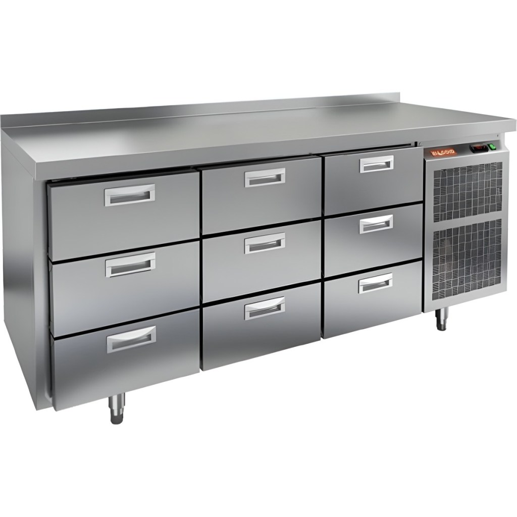 Каталог оборудования Холодильное оборудованиеСтолы охлаждаемыеСтолы морозильные низкотемпературныеСтол морозильный HiCold GN 333/BT Стол морозильный HiCold GN 333/BT Код товара: 065-153 Поделиться: WhatsAppTelegram СравнитьДобавить в КПВ избранное 0 312 652 ₽ В корзину 0 шт Под заказСамовывоз сегодня бесплатно Взять в кредит Купить в лизинг Получить консультацию в WhatsApp Описание Характеристики Отзывы 0 Инструкции 2 Стол морозильный HiCold GN 333/BT — это удобное и функциональное оборудование для профессиональных кухонь. Он сочетает в себе полноценную рабочую поверхность, на которой можно раскатывать тесто, подготавливать ингредиенты и собирать блюда, и вместительную камеру для заморозки и хранения продуктов и полуфабрикатов. Подходит для ресторанов, кафе, столовых и других предприятий общественного питания. Особенности: Совместимость со стандартом GN — полки, направляющие и стойки адаптированы под гастроемкости. Прочный цельнозаливной корпус из нержавеющей стали с теплоизоляцией 50 мм — высокая герметичность, жёсткость и энергоэффективность. Электронный блок управления — надёжная работа и несколько режимов оттаивания. Мощный вентилятор и система принудительной вентиляции — быстрое и равномерное охлаждение. Интеллектуальная система размораживания и термическое выпаривание конденсата — снижение затрат на обслуживание. Новый экономичный компрессор — высокая производительность при низком энергопотреблении. Удобный доступ к агрегату — простота сервисного обслуживания. Ящики с плавным ходом и контурный электронагреватель (ПЭН) — удобный доступ к продуктам и защита от примерзания. Регулируемые по высоте ножки — устойчивость на любых поверхностях. Высота борта столешницы — 50 мм для удобства и гигиеничности. Температурный диапазон эксплуатации: от +12 до +32 °C. HiCold GN 333/BT — это современный морозильный стол, который объединяет рабочее место и надёжное хранение продуктов. Он обеспечивает стабильный холод, удобство в работе и энергоэффективность, что делает его оптимальным решением для интенсивной эксплуатации на профессиональной кухне. Изображение товара, представленного на фото, может отличаться от его фактического вида. Показать все Габаритные размеры1835×700×850 ммДиапазон рабочей температурыот -18 до -10 °CРасположение агрегатаБоковое Материал столешницыНержавеющая Тип столаС ящиками Объём505 лКоличество ящиков9 штНапряжение220 ВМощность0,6 кВтТип охлажденияДинамический Тип оттайкиАвтоматическая СтолешницаС бортом Габариты в упаковке2000×850×1000 ммВес нетто115 кгВес брутто135 кгБрендHicoldВсе морозильные столы HicoldВсе морозильные столы с бортом Оставить отзыв Еще никто не оставил отзыв на этот товар Паспорт на HICOLD GN 333/BT.pdfДекларация о соответствии.pdf Ранее просмотрено Под заказ 189 711 ₽ Стол морозильный HiCold GN12/BT М В наличии 96 630 ₽ Льдогенератор HURAKAN HKN-IMF80 (пальчики) В наличии 207 275 ₽ Сплит-система холодильная среднетемпературная Intercold MCM 331/380 FT Evolution (опция -30° С) Под заказ 253 612 ₽ Стол морозильный HiCold GN 122 BR2 BT Под заказ 130 003 ₽ Сплит-система холодильная среднетемпературная Север MGSF 110 S L7 Под заказ 152 091 ₽ Стол морозильный HiCold GNE 12/BT В наличии 126 998 ₽ Стол морозильный Kayman КСМ-111/60