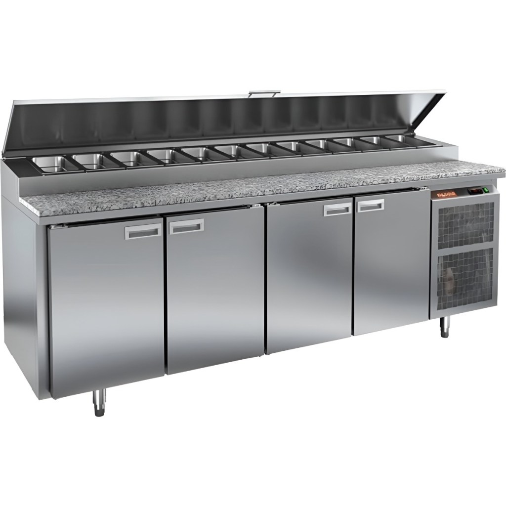 Каталог оборудования Холодильное оборудованиеСтолы охлаждаемыеСтолы холодильные для пиццыСтол холодильный для пиццы HiCold PZ1-1111GN (1/3) камень Стол холодильный для пиццы HiCold PZ1-1111GN (1/3) камень Код товара: 064-684 Поделиться: WhatsAppTelegram СравнитьДобавить в КПВ избранное 0 290 062 ₽ В корзину 0 шт Под заказСамовывоз сегодня бесплатно Взять в кредит Купить в лизинг Получить консультацию в WhatsApp Описание Характеристики Отзывы 0 Инструкции 2 Стол холодильный для пиццы HiCold PZ1-1111GN (1/3) камень предназначен для профессиональных кухонь ресторанов, кафе и предприятий торговли. Он совмещает просторную рабочую поверхность из камня для раскатки теста и подготовки ингредиентов с охлаждаемым объёмом для кратковременного хранения продуктов и напитков. Такой подход экономит место и ускоряет работу повара — всё необходимое всегда под рукой. Основные особенности: Столешница из камня — устойчива к механическим повреждениям, не впитывает запахи и легко очищается Динамическая система охлаждения для равномерного распределения холода Автоматическая оттайка для бесперебойной работы Электронная панель управления для точной регулировки температуры 4 вместительные полки формата GN 1/1 (размер 530×325 мм) Автоматические доводчики дверей с фиксатором открытого положения Легкозаменяемые магнитные уплотнители для поддержания герметичности Открытая агрегатная часть для удобного обслуживания Регулируемые по высоте ножки для установки по уровню Максимальная глубина гастроёмкостей: 100 мм Глубина рабочей поверхности: 324 мм Толщина столешницы и теплоизоляции: 50 мм Вместимость салат-бара: до 12 гастроёмкостей HICOLD PZ1-1111/GN со столешницей из камня — это прочный, гигиеничный и удобный стол для пиццы, сочетающий рабочую поверхность и холодильный блок. Идеален для интенсивной эксплуатации на профессиональной кухне.Изображение товара, представленного на фото, может отличаться от его фактического вида. Показать все Габаритные размеры2280×700×1000 ммДиапазон рабочей температурыот +2 до +10 °CРасположение агрегатаБоковое Материал столешницыГранитная Тип столаС дверьми Тип двериГлухая Объём660 лТип гастроемкостейGN 1/3 Количество дверей4 штРазмер полки530×325 ммНапряжение220 ВМощность0,48 кВтТип охлажденияДинамическое Тип оттайкиАвтоматическая Габариты в упаковке2380×840×1140 ммВес нетто208 кгВес брутто228 кгБрендHicoldВсе холодильные столы для пиццы Hicold Оставить отзыв Еще никто не оставил отзыв на этот товар Паспорт на HICOLD PZ1-1111GN (1/3).pdfДекларация о соответствии.pdf Ранее просмотрено Под заказ 193 312 ₽ Стол холодильный для пиццы HiCold PZ2-11/GN (1/6H) стекло