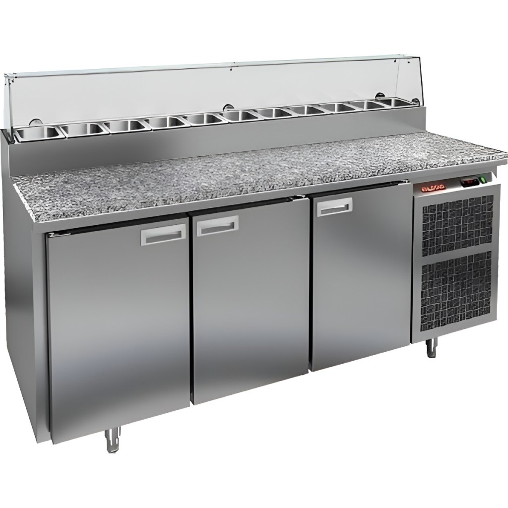 Каталог оборудования Холодильное оборудованиеСтолы охлаждаемыеСтолы холодильные для пиццыСтол холодильный для пиццы HiCold PZ2-111GN (1/6) камень со стеклом Стол холодильный для пиццы HiCold PZ2-111GN (1/6) камень со стеклом Код товара: 064-742 Поделиться: WhatsAppTelegram СравнитьДобавить в КПВ избранное 0 256 672 ₽ В корзину 0 шт Под заказСамовывоз сегодня бесплатно Взять в кредит Купить в лизинг Получить консультацию в WhatsApp Описание Характеристики Отзывы 0 Инструкции 2 Стол холодильный для пиццы HiCold PZ2-111GN (1/6) камень со стеклом предназначен для предприятий общественного питания и торговли. Он совмещает рабочую поверхность для раскатки теста и подготовки ингредиентов с охлаждаемым блоком для кратковременного хранения скоропортящихся продуктов и напитков. Стеклянный купол защищает ингредиенты от внешних воздействий и обеспечивает их наглядную демонстрацию, что особенно удобно при использовании в салат-барах. Корпус выполнен из нержавеющей стали, а рабочая столешница — из гранита, что обеспечивает долговечность, прочность и удобство работы с продуктами. Основные особенности: Гранитная столешница и корпус из нержавеющей стали — прочность, долговечность и лёгкость ухода Стеклянный купол — защита ингредиентов и визуальная демонстрация продуктов Динамическая система охлаждения — равномерное распределение холода по всему объёму Автоматическая оттайка — стабильная работа без наледи Электронная панель управления — точная настройка температуры 3 вместительные внутренние полки формата GN 1/1 (размер 530×325 мм) — удобное хранение ингредиентов Автоматические доводчики дверей с фиксатором открытого положения — комфортная эксплуатация Легкозаменяемые магнитные уплотнители — поддержание герметичности Открытая агрегатная часть — лёгкий доступ к техническим элементам Регулируемые по высоте ножки — установка на неровных поверхностях Максимальная глубина гастроёмкостей: 100 мм Глубина рабочей поверхности: 486 мм Толщина столешницы: 50 мм Толщина теплоизоляции: 50 мм Вместимость салат-бара: до 11 гастроёмкостей Стол холодильный HiCold PZ2-111GN (1/6) камень со стеклом— надёжный и функциональный стол для пиццы и салатов. Гранитная рабочая поверхность повышает прочность и долговечность оборудования, а стеклянный купол обеспечивает защиту и наглядное представление ингредиентов. Стол обеспечивает удобство работы и быстрый доступ к продуктам, делая его оптимальным решением для профессиональных кухонь и предприятий общественного питания. Изображение товара, представленного на фото, может отличаться от его фактического вида. Показать все Габаритные размеры1835×700×1000 ммДиапазон рабочей температурыот +2 до +10 °CРасположение агрегатаБоковое Материал столешницыГранитная Тип столаС дверьми Тип двериГлухая Объём505 лТип гастроемкостейGN 1/6 Количество дверей3 штРазмер полки530×325 ммНапряжение220 ВМощность0,46 кВтТип охлажденияДинамическое Тип оттайкиАвтоматическая Габариты в упаковке2000×850×1080 ммВес нетто172 кгВес брутто248 кгБрендHicoldВсе холодильные столы для пиццы Hicold Оставить отзыв Еще никто не оставил отзыв на этот товар Паспорт на HICOLD PZ2-111GN.pdfДекларация о соответствии.pdf Ранее просмотрено 114 417 ₽ Витрина холодильная Иней LIDA-LOTUS S 1,8