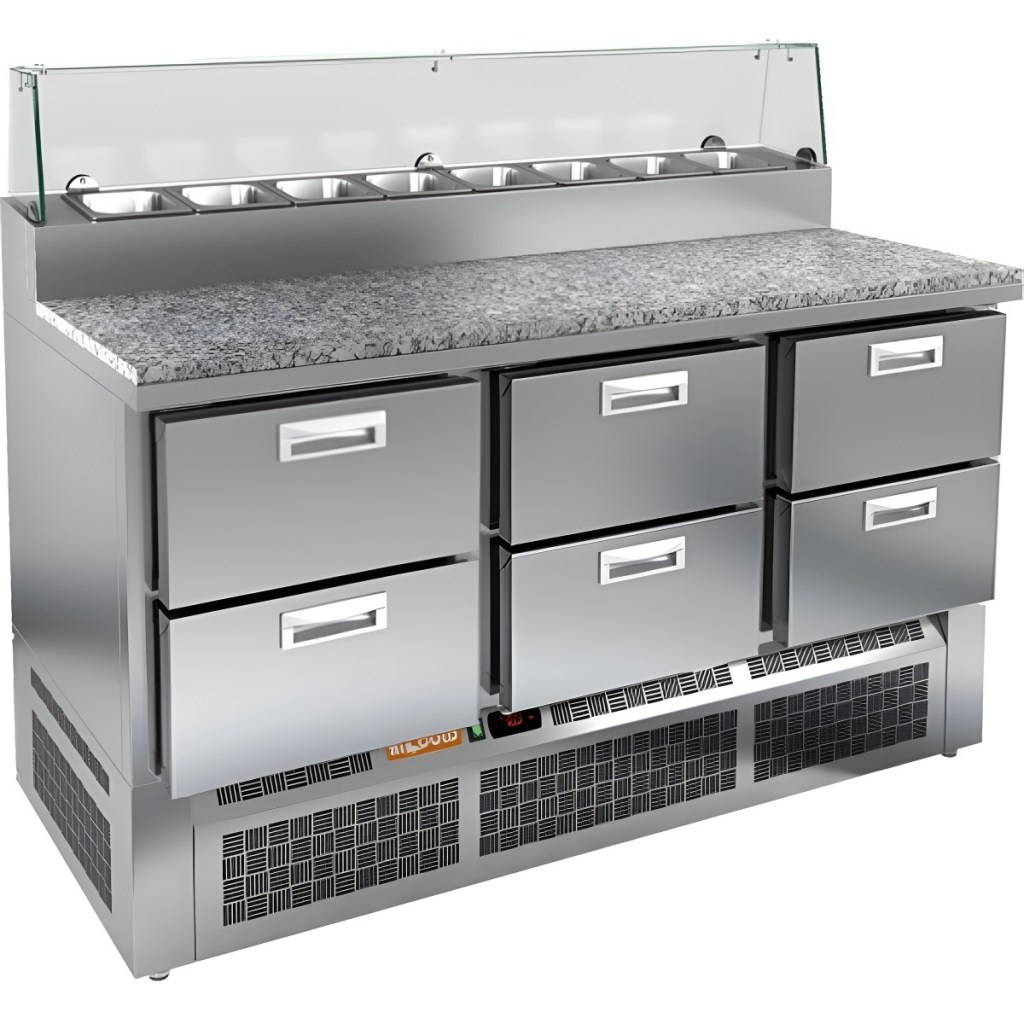 Каталог оборудования Холодильное оборудованиеСтолы охлаждаемыеСтолы холодильные для пиццыСтол холодильный для пиццы HiCold PZE2-222/GN (1/6H) камень со стеклом Стол холодильный для пиццы HiCold PZE2-222/GN (1/6H) камень со стеклом Код товара: 064-966 Поделиться: WhatsAppTelegram СравнитьДобавить в КПВ избранное 0 311 842 ₽ В корзину 0 шт Под заказСамовывоз сегодня бесплатно Взять в кредит Купить в лизинг Получить консультацию в WhatsApp Описание Характеристики Отзывы 0 Стол холодильный для пиццы HiCold PZE2-222/GN (1/6H) камень со стеклом предназначен для использования на предприятиях общественного питания и торговли. Он совмещает охлаждаемый объём и удобную рабочую поверхность, обеспечивая повару быстрый доступ к ингредиентам и комфорт при подготовке блюд — от пиццы и салатов до закусок и десертов. Модель отличается прочной и гигиеничной конструкцией: корпус выполнен из нержавеющей стали, устойчивой к износу и простой в уходе. Столешница из гранита надёжна и долговечна, а стеклянный купол защищает продукты от внешних воздействий и подчёркивает их привлекательный вид. Ключевые особенности: Электронная панель управления – точная регулировка температурного режима 6 выдвижных ящиков — позволяют удобно распределить ингредиенты и оптимально организовать пространство для хранения продуктов Салат-бар на 8 гастроемкостей – удобное размещение и быстрый доступ к ингредиентам Автоматические доводчики дверей с фиксатором открытого положения – комфорт при работе Легкозаменяемые магнитные уплотнители – надёжная герметизация и простота обслуживания Открытая агрегатная часть – лёгкий доступ для технического обслуживания Регулируемые по высоте ножки – устойчивость на разных типах покрытия Максимальная глубина гастроемкостей: 100 мм Глубина рабочей поверхности: 486 мм Толщина столешницы: 50 мм HiCold PZE2-222/GN (1/6H) камень со стеклом — универсальный стол для пиццы, сочетающий вместительное охлаждение и рабочую поверхность из нержавеющей стали. Подходит для ресторанов, кафе и пиццерий, где важно удобство, гигиена и надёжность оборудования.Изображение товара, представленного на фото, может отличаться от его фактического вида. Показать все Габаритные размеры1485×700×990 ммДиапазон рабочей температурыот +2 до +10 °CРасположение агрегатаНижнее Материал столешницыГранитная Тип столаС ящиками Объём375 лТип гастроемкостейGN 1/6 Количество ящиков6 штРазмер полки530×325 ммНапряжение220 ВМощность0,2 кВтТип охлажденияДинамическое Тип оттайкиАвтоматическая СтолешницаСо стеклянным куполом Габариты в упаковке1700×850×1180 ммВес нетто123 кгВес брутто175 кгБрендHicold Оставить отзыв Еще никто не оставил отзыв на этот товар Ранее просмотрено Под заказ 186 327 ₽ Витрина кондитерская Carboma KC70 VV 1,3-1 Standard Паттерн (0108 Темный дуб)
