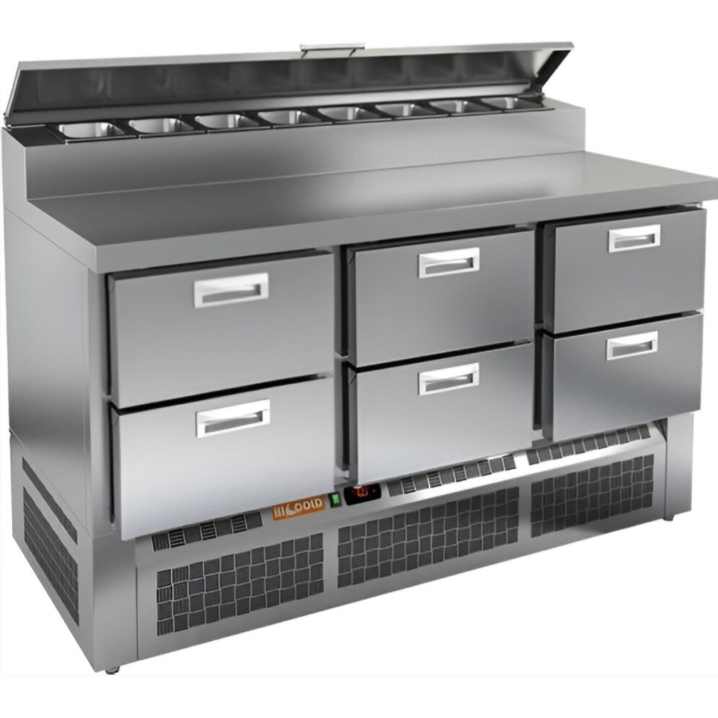 Каталог оборудования Холодильное оборудованиеСтолы охлаждаемыеСтолы холодильные для пиццыСтол холодильный для пиццы HiCold PZE2-222/GN (1/6H) Стол холодильный для пиццы HiCold PZE2-222/GN (1/6H) Код товара: 064-965 Поделиться: WhatsAppTelegram СравнитьДобавить в КПВ избранное 0 278 362 ₽ В корзину 0 шт Под заказСамовывоз сегодня бесплатно Взять в кредит Купить в лизинг Получить консультацию в WhatsApp Описание Характеристики Отзывы 0 Стол холодильный для пиццы HiCold PZE2-222/GN (1/6H) предназначен для использования на предприятиях общественного питания и торговли. Он совмещает охлаждаемый объём и удобную рабочую поверхность, обеспечивая повару быстрый доступ к ингредиентам и комфорт при подготовке блюд — от пиццы и салатов до закусок и десертов. Модель отличается прочной и гигиеничной конструкцией: корпус и столешница изготовлены из нержавеющей стали, что гарантирует износостойкость и лёгкость в уходе даже при интенсивной эксплуатации. Ключевые особенности: Электронная панель управления – точная регулировка температурного режима 6 выдвижных ящиков — позволяют удобно распределить ингредиенты и оптимально организовать пространство для хранения продуктов Салат-бар на 8 гастроемкостей – удобное размещение и быстрый доступ к ингредиентам Автоматические доводчики дверей с фиксатором открытого положения – комфорт при работе Легкозаменяемые магнитные уплотнители – надёжная герметизация и простота обслуживания Открытая агрегатная часть – лёгкий доступ для технического обслуживания Регулируемые по высоте ножки – устойчивость на разных типах покрытия Максимальная глубина гастроемкостей: 100 мм Глубина рабочей поверхности: 486 мм Толщина столешницы: 50 мм HiCold PZE2-222/GN (1/6H) — универсальный стол для пиццы, сочетающий вместительное охлаждение и рабочую поверхность из нержавеющей стали. Подходит для ресторанов, кафе и пиццерий, где важно удобство, гигиена и надёжность оборудования.Изображение товара, представленного на фото, может отличаться от его фактического вида. Показать все Габаритные размеры1485×700×990 ммДиапазон рабочей температурыот +2 до +10 °CРасположение агрегатаНижнее Материал столешницыНержавеющая Тип столаС ящиками Объём375 лТип гастроемкостейGN 1/6 Количество ящиков6 штРазмер полки530×325 ммНапряжение220 ВМощность0,2 кВтТип охлажденияДинамическое Тип оттайкиАвтоматическая СтолешницаС бортом Габариты в упаковке1700×850×1180 ммВес нетто123 кгВес брутто175 кгБрендHicoldВсе нержавеющие холодильные столы для пиццы Оставить отзыв Еще никто не оставил отзыв на этот товар Ранее просмотрено Под заказ 148 942 ₽ Стол холодильный среднетемпературный HiCold GNE 12/TN 3 замка Под заказ 19 229 ₽ Стол производственный Abat СПРО-7-3 из нержавеющей стали