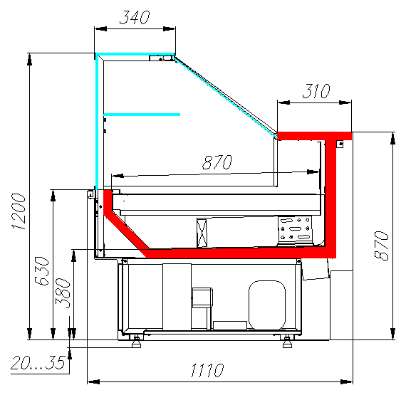 Глубина выкладки: 870 мм.