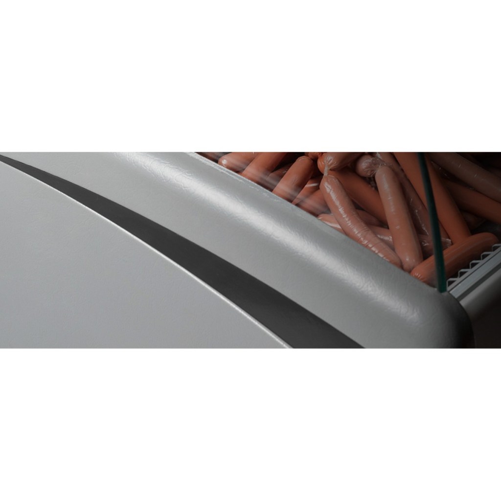 Витрина оснащена изогнутым фронтальным стеклом, обеспечивающим отличную обзорность продукции, люминесцентной подсветкой экспозиционной зоны и вместительной охлаждаемой камерой для хранения товарного запаса. Экспозиционная и рабочая поверхности выполнены из нержавеющей стали, боковые панели изготовлены из ударопрочного ABS-пластика, а теплоизоляция из пенополиуретана эффективно поддерживает стабильный температурный режим.