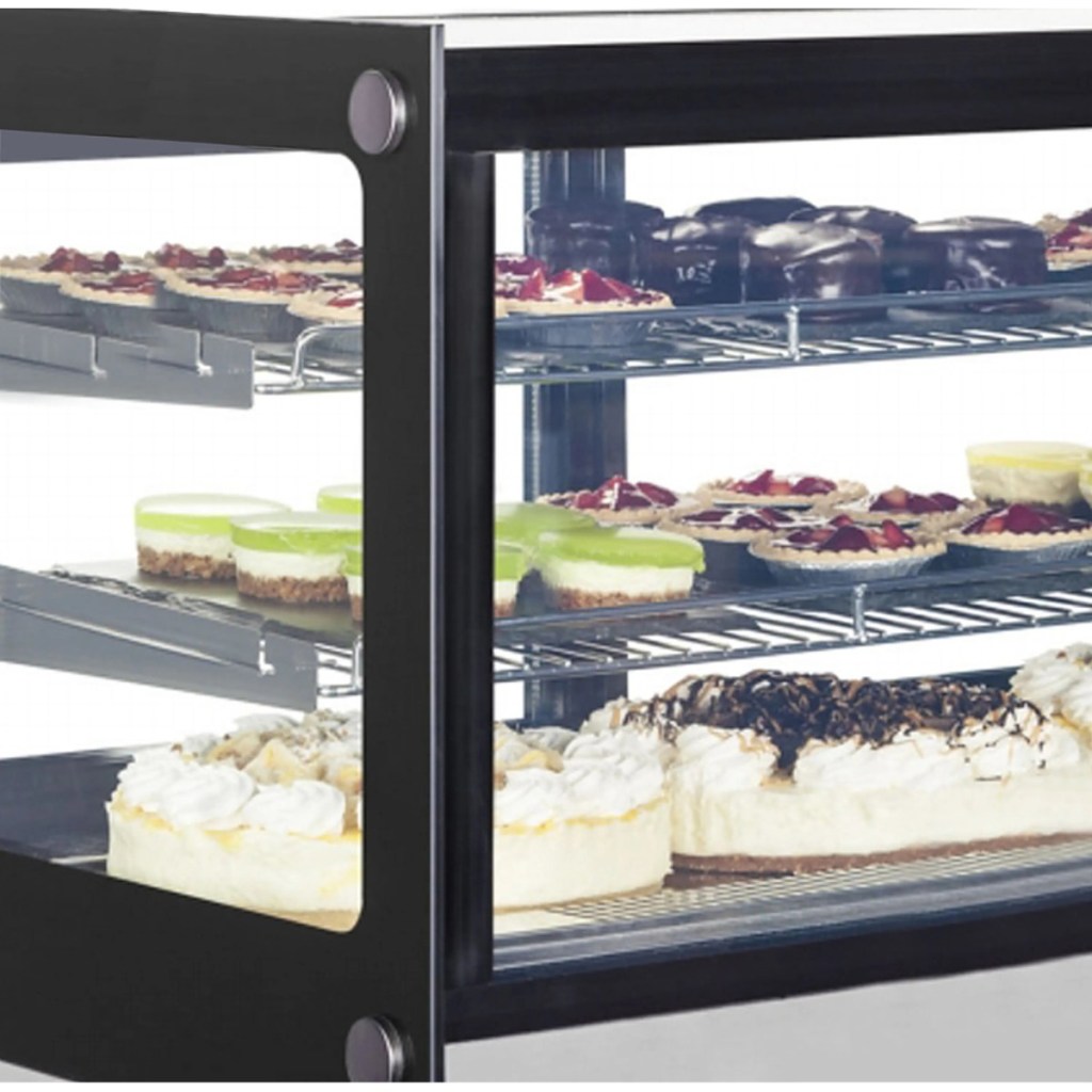 TEFCOLD LCT900F/BLACK — компактная и функциональная настольная витрина для кафе, кондитерских и магазинов. Она обеспечивает эффектную демонстрацию и равномерное охлаждение продукции, поддерживает свежесть и привлекательный вид блюд, облегчает работу персонала благодаря удобной конструкции, LED-подсветке и раздвижным дверцам.