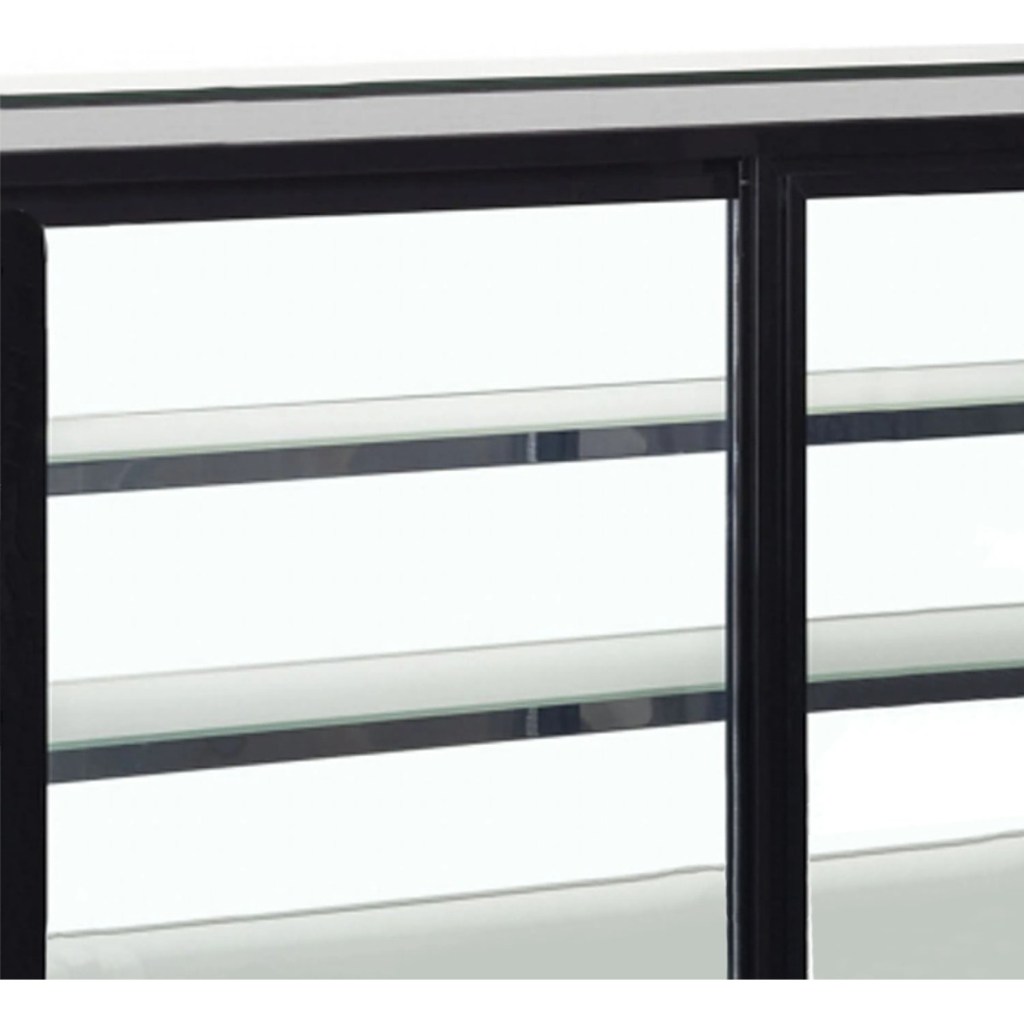 Витрина оснащена 2 раздвижными стеклянными дверцами-купе, 2 решетчатыми хромированными полками, термометром и электронным блоком управления, а также встроенной LED-подсветкой, которая подчёркивает внешний вид и свежесть продукции. Корпус выполнен из нержавеющей стали, что обеспечивает долговечность и лёгкий уход.